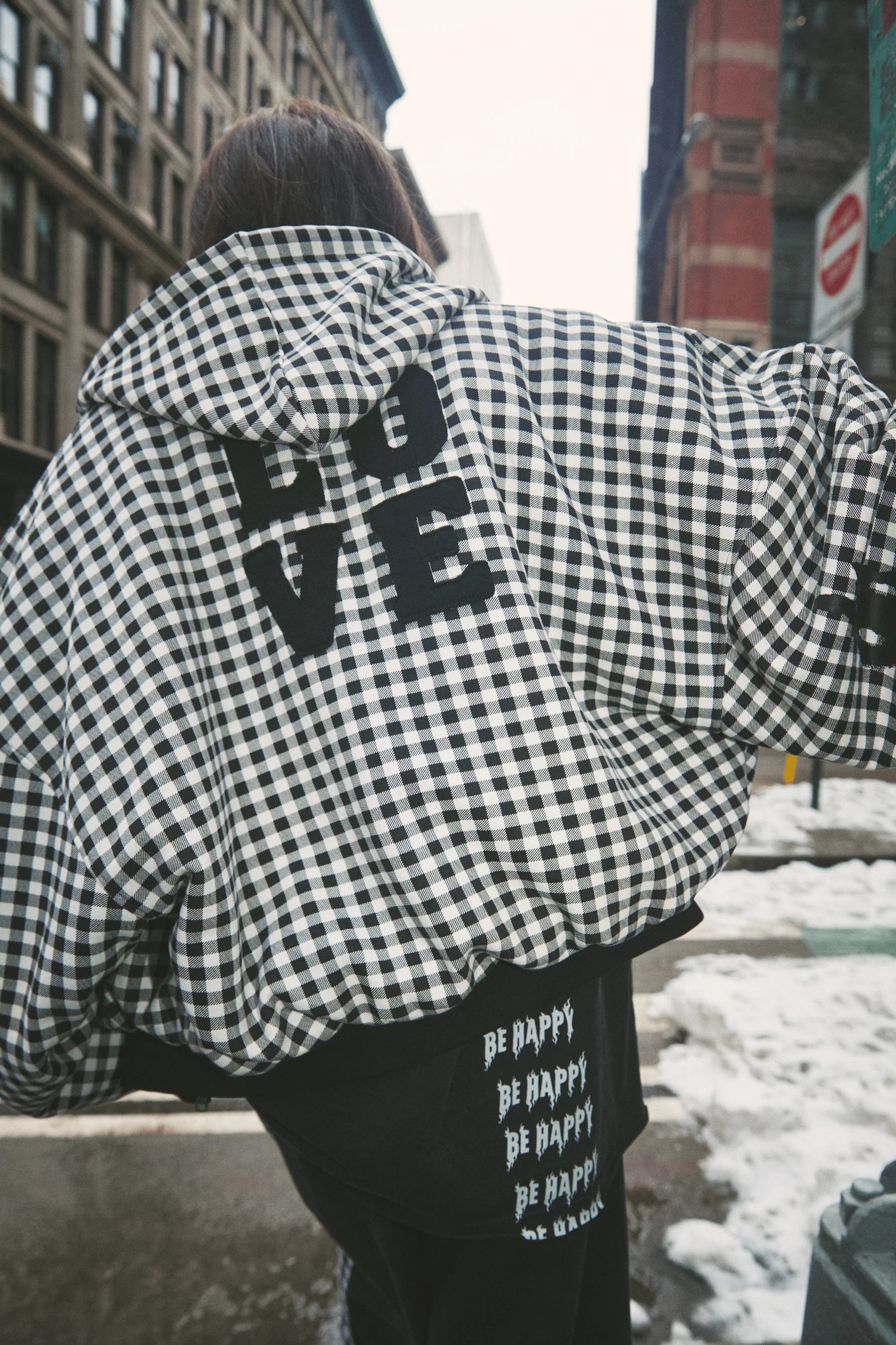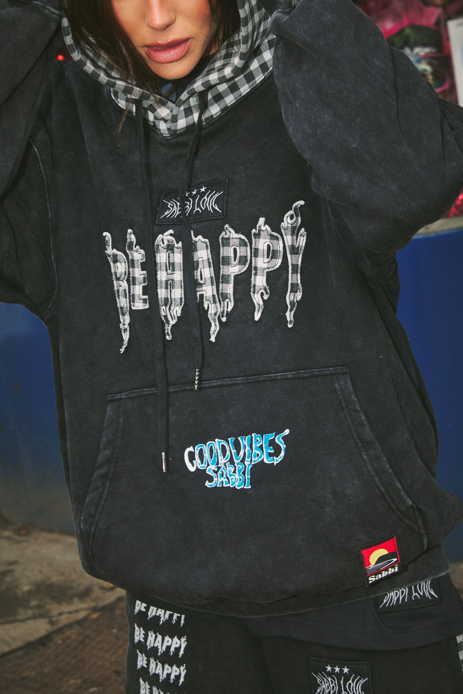 The Be Happy Hoodie | Gingham
