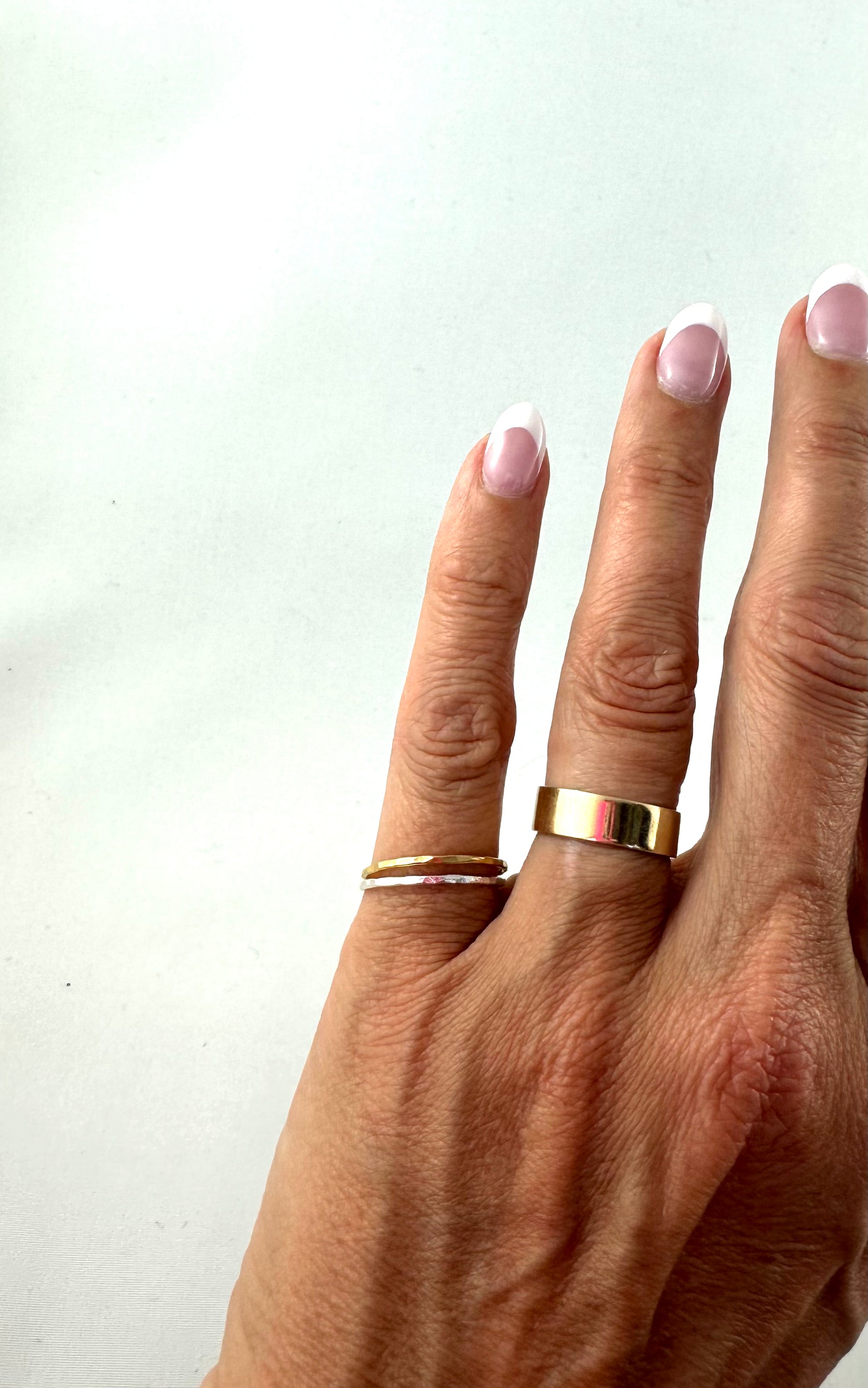 The most gorgeous ring to make. Feel effortless while wearing this baby! With its textured, thin band, this ring is guaranteed to go with any outfit you wear. Stack it up with multiple or wear alone! Once you put it on we bet you won’t take it off!