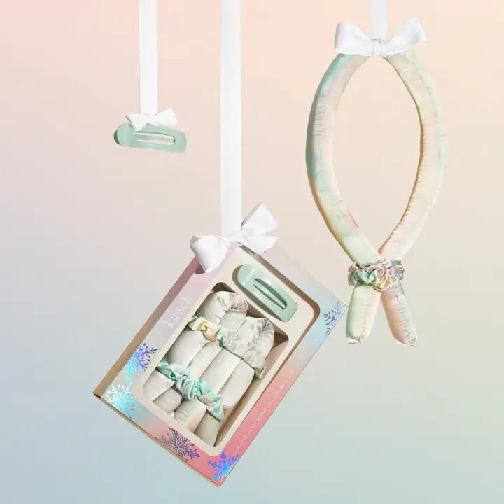KITSCH - Unwrap healthier hair routines with our heatless curling set Wrap, set, and style your strands with silky-soft satin for effortless curls and waves—without the heat damage Extra large curling rods create a loose, bouncy style, while the claw clip and scrunchies hold the rod and your hair in place