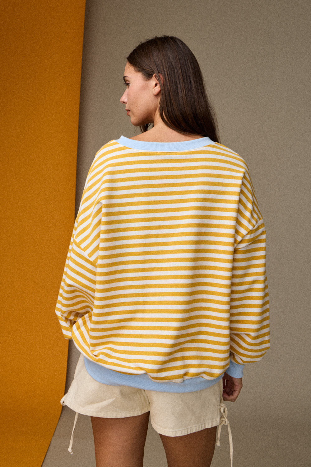 - Relaxed drop shoulder silhouette for effortless layering