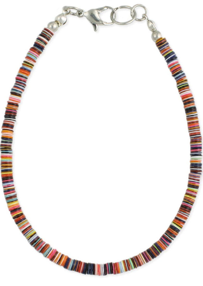 Multi color ankle bracelet with a rainbow array of stacked sequins.