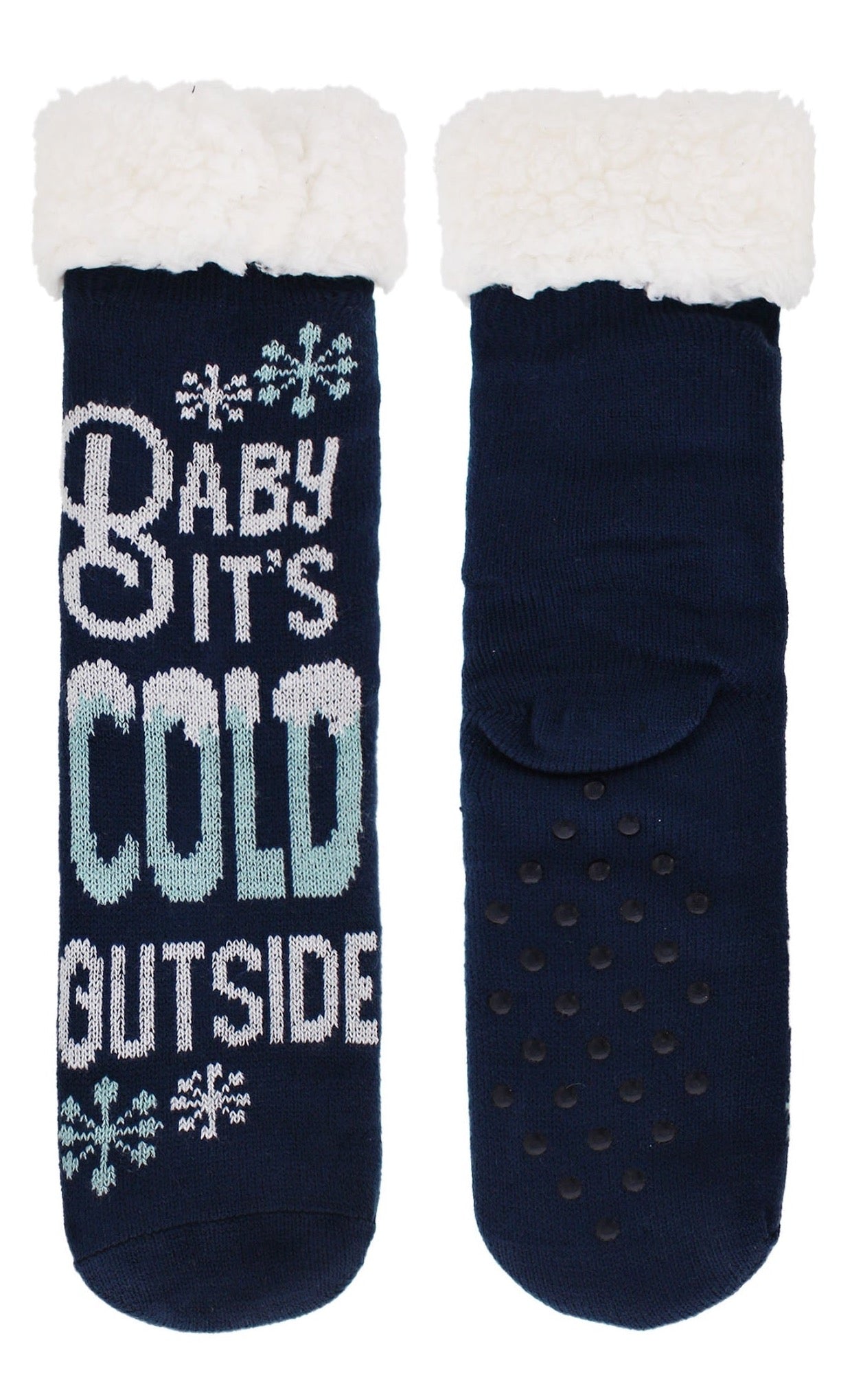 CHRISTMAS ADULT FAUX SHEARLING LINED SLIPPER SOCK WITH NON-SKID
