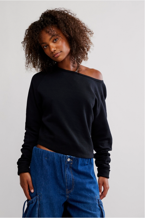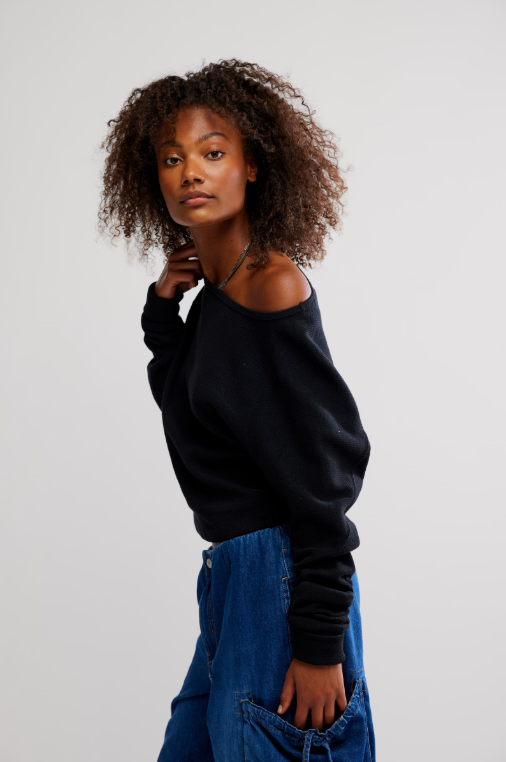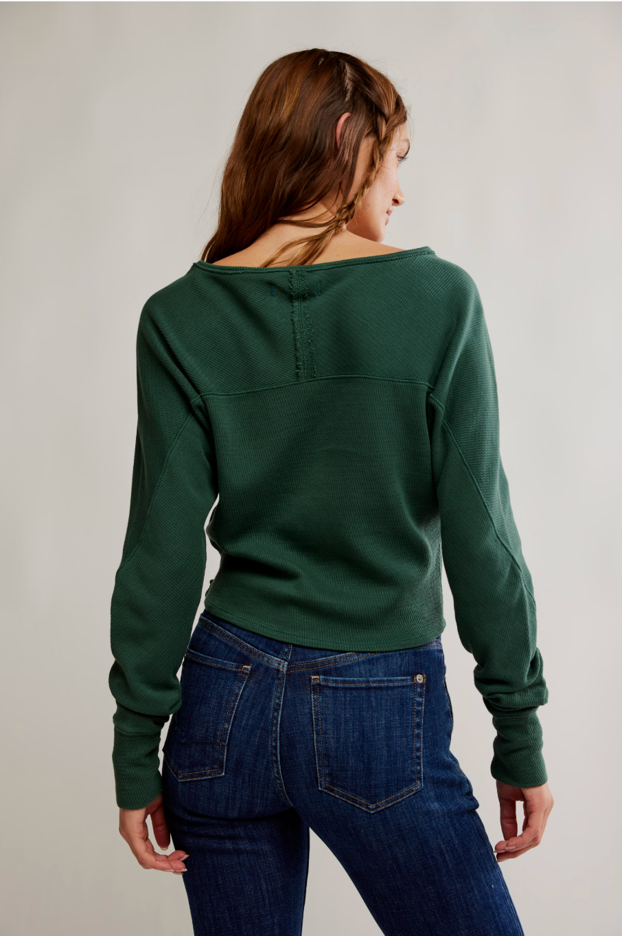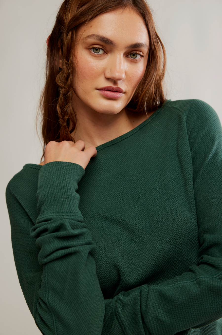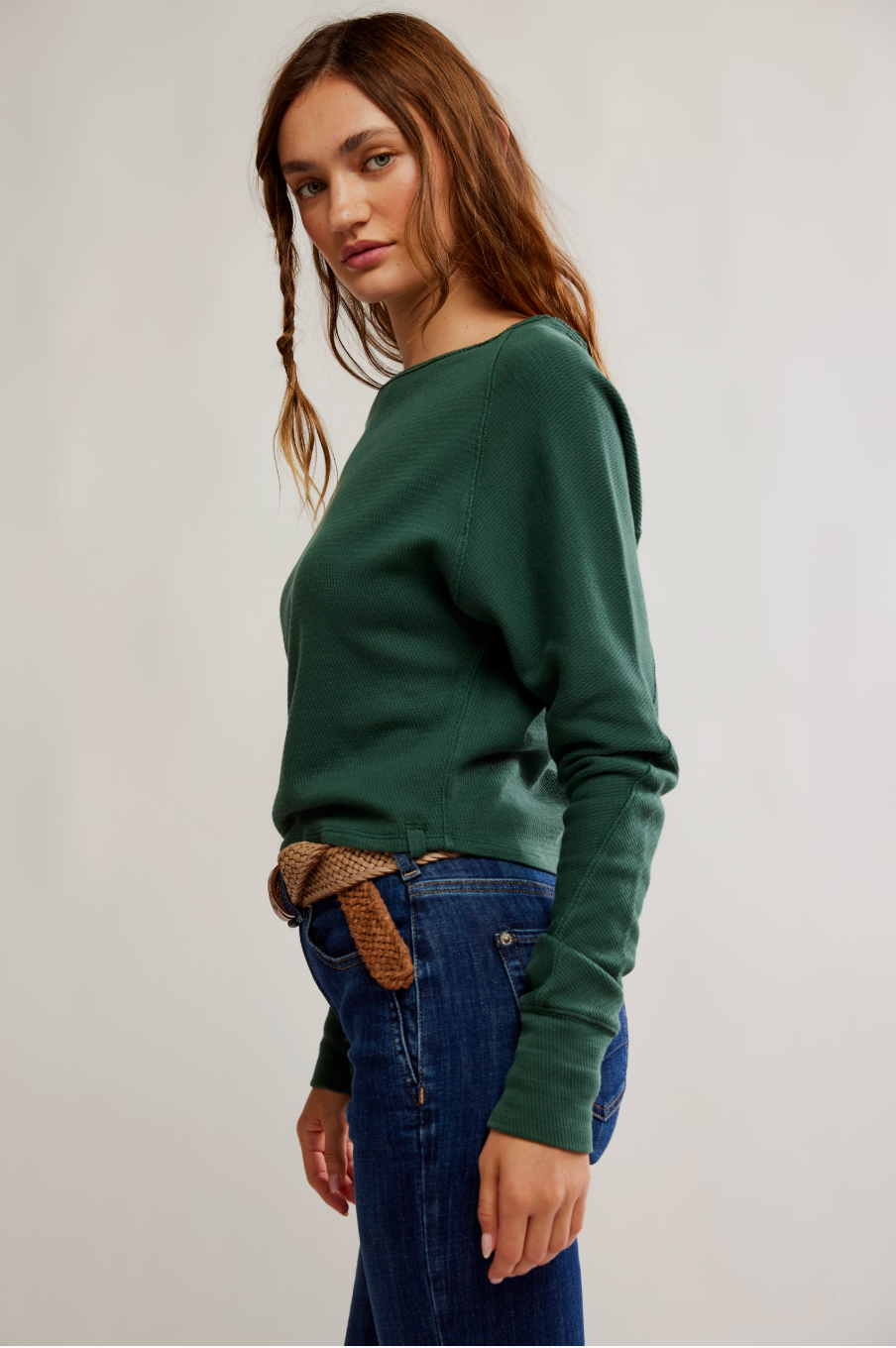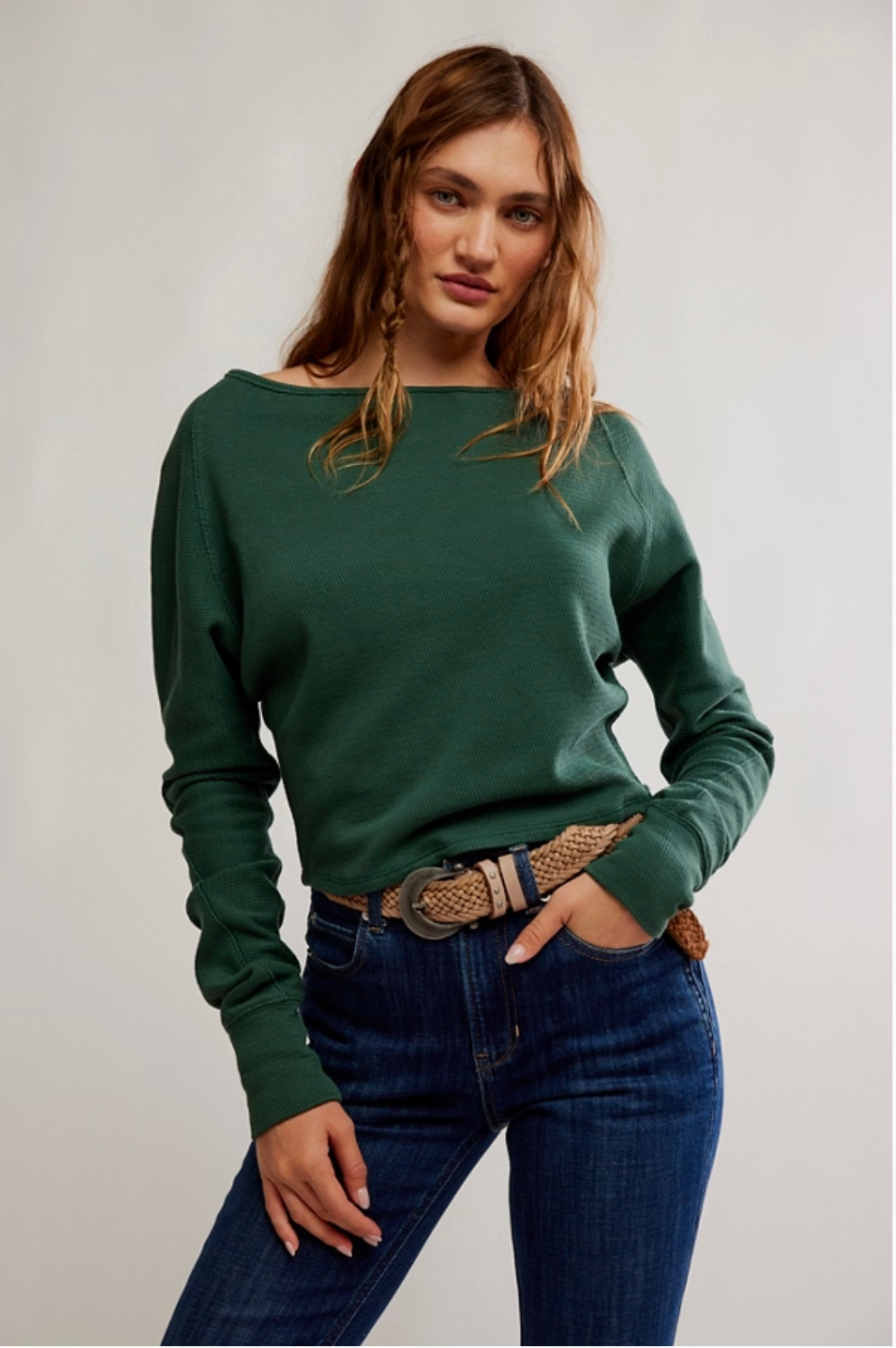 A cozy base for endless outfitting, this long sleeve from We The Free is featured in a thermal fabrication with a flattering boat neckline and slouchy dolman sleeves.