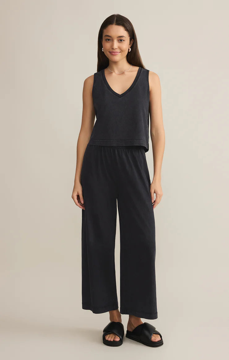 This flare pant is made with a 100% cotton jersey knit fabric and features a wide flare silhouette with an elastic waistband. This pant is a relaxed but stylish piece that looks so good with any of our everyday tops.