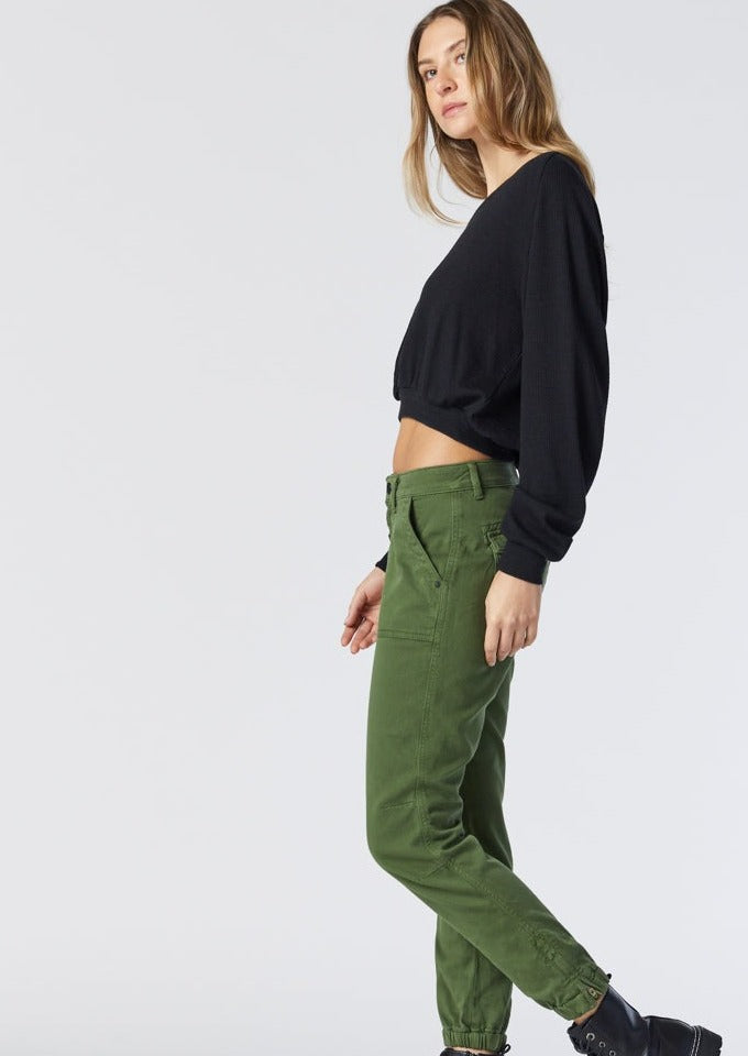Designed with a nod to the classic cargo with a modern update, our Ivy cargo pants have a mid-rise and a slim silhouette. This fit features a bunched hem that is cropped at the ankles.
