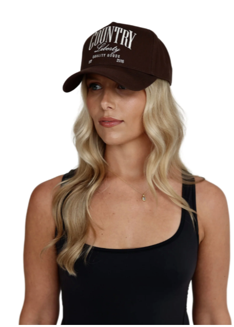 Our fan-favorite brown hat, now featuring a brand new vintage-inspired script logo. Clean and classic, this structured A-frame snapback pairs effortlessly with anything, making it a go-to for summer days, road trips, and country nights.