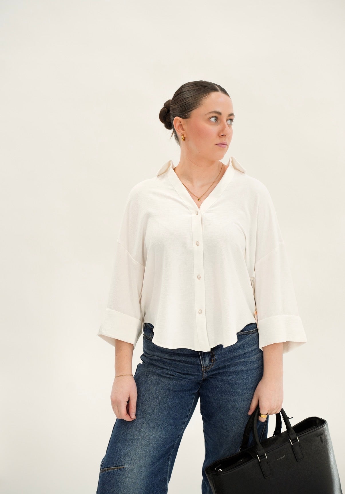 Cuffed Button Front Blouse