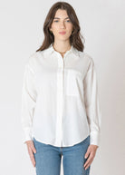 Details: Long sleeve, button up, striped textured fabric, white colorway, collar, single chest pocket, double buttoned cuffs with adjustable sleeve length.