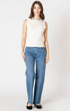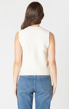 Details: Textured stitch, sweater tank, cream colourway, slight mock neck, mid-length.