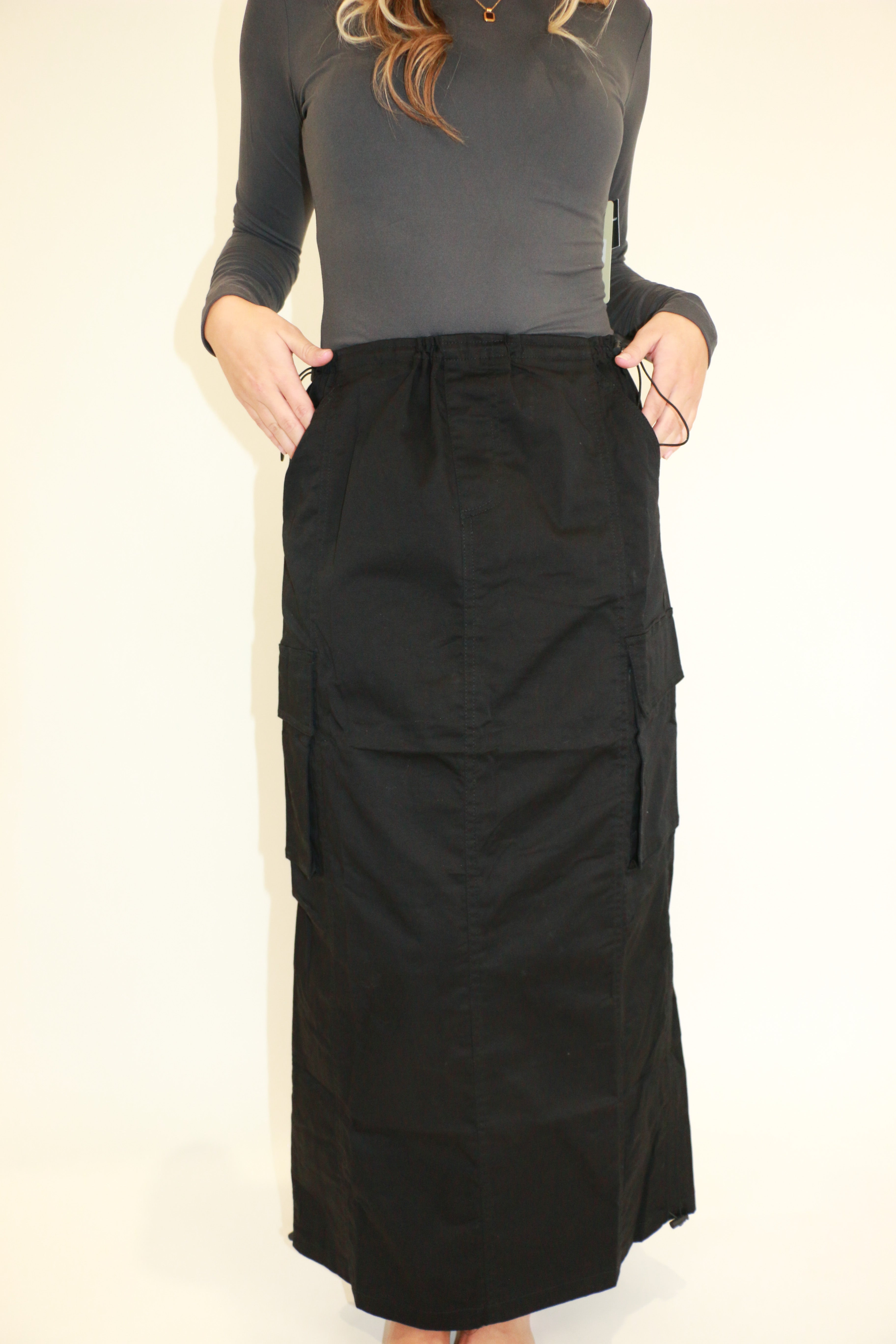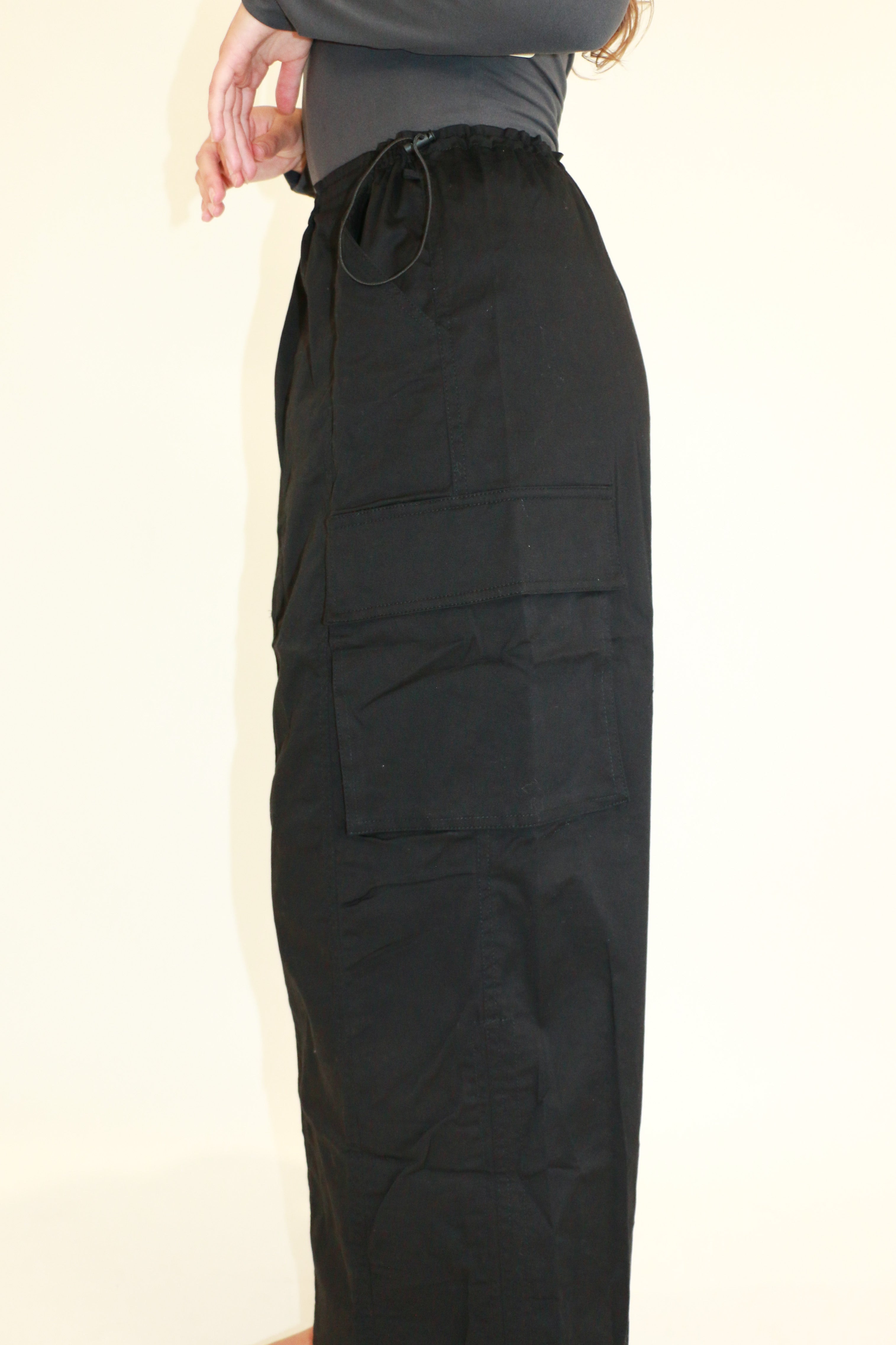 Details: Drawstring waist, Drawstring near the bottom on both sides, Back slit