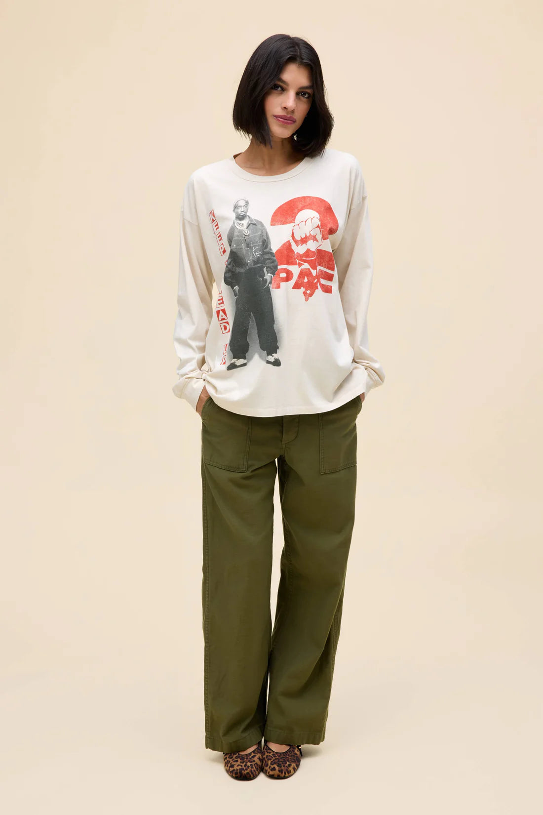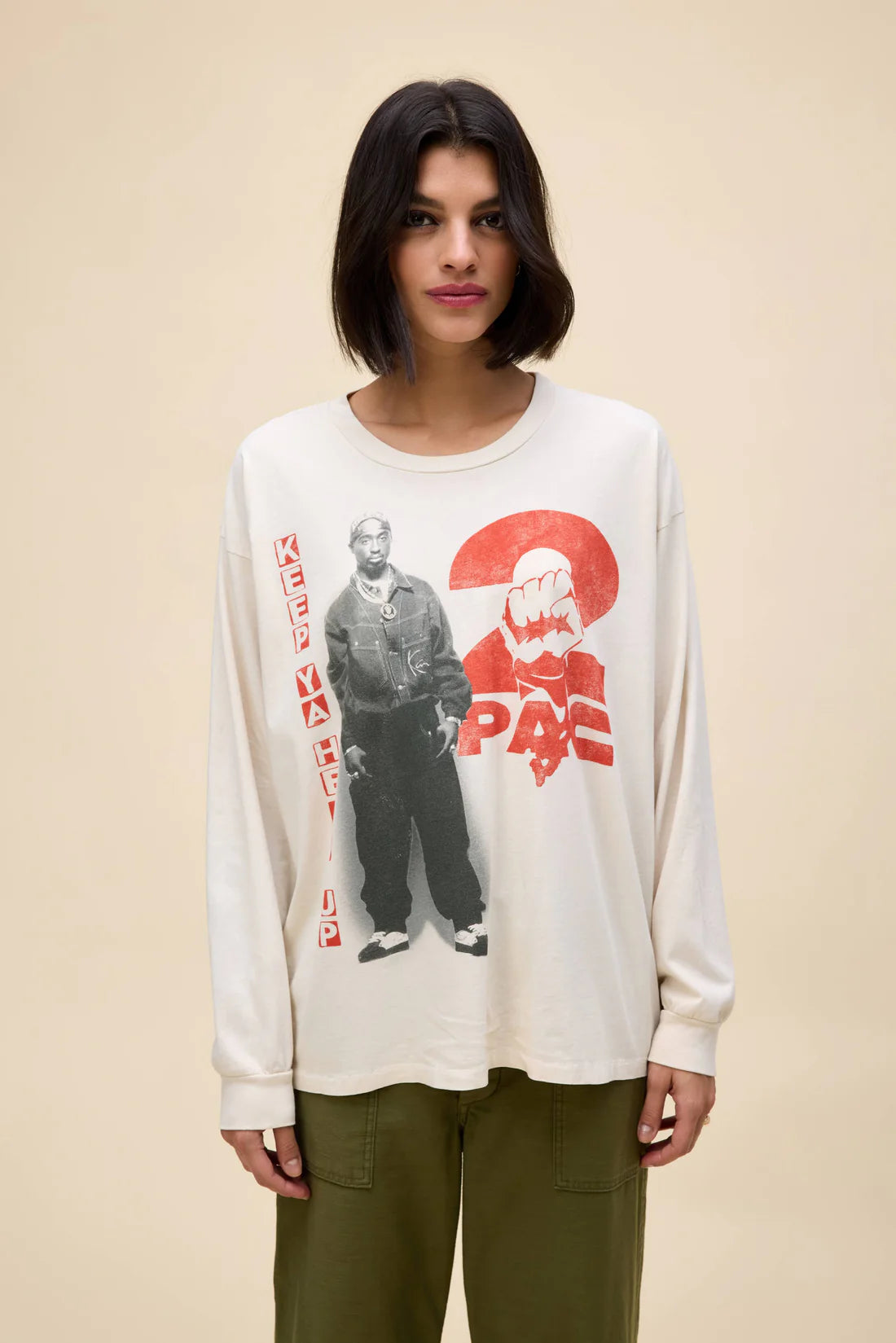 Tupac Keep Ya Head Up Merch Long Sleeve | Dirty White