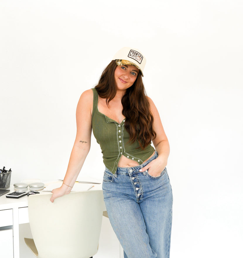 The perfect timeless tank, this sweet staple is featured in a soft cotton fabrication and button-front style with a wide square neckline and pointelle detail.