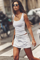 Take your tops collection to the next level with this timeless tank featured in a staple ribbed knit fabrication with scoop neckline, rounded bottom hem, and defined seaming throughout for a true lived-in look.