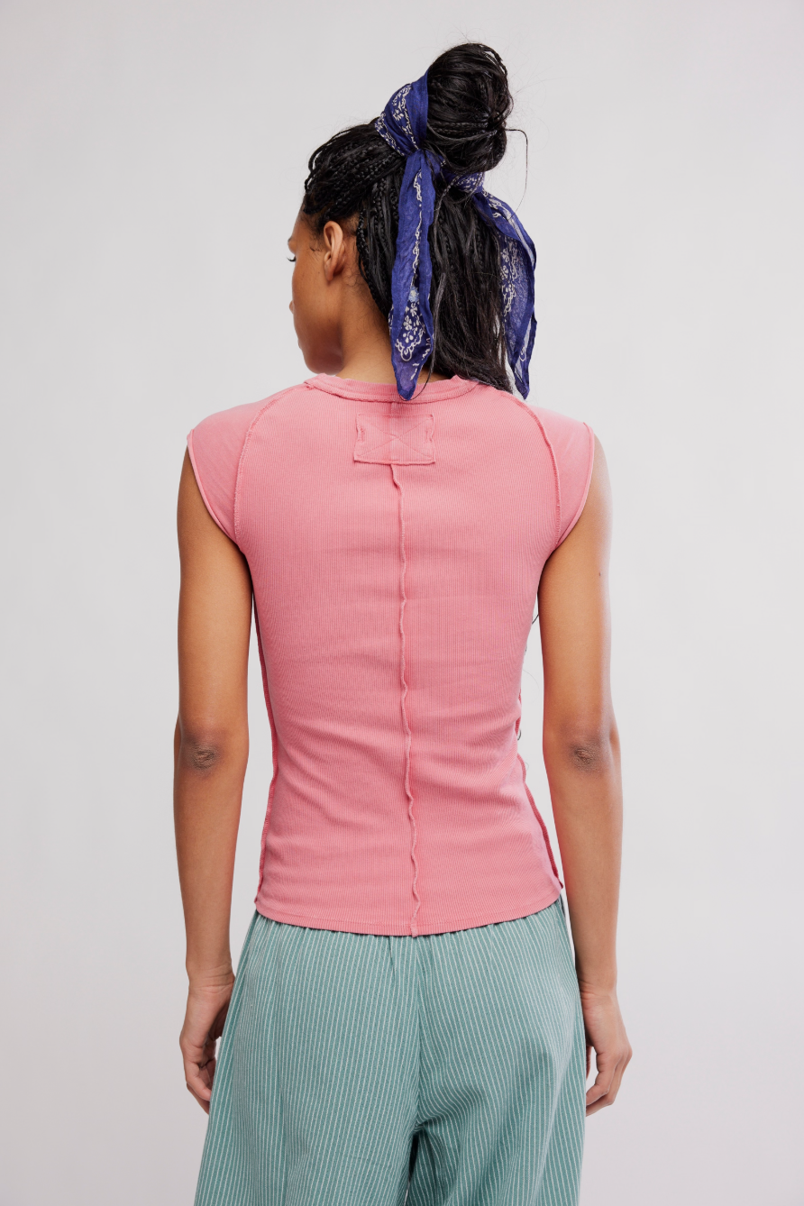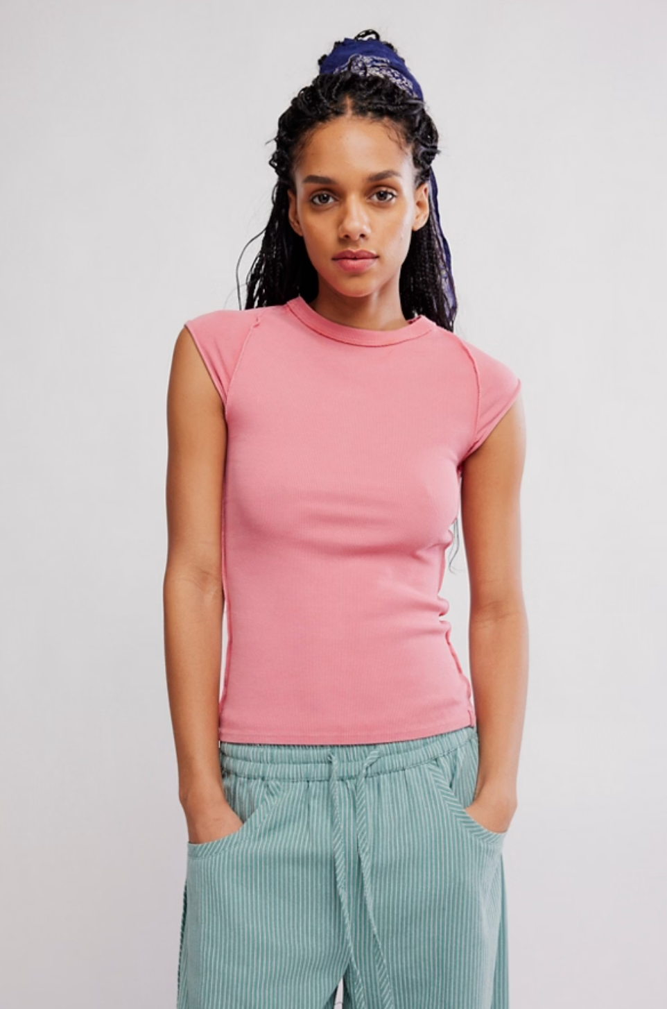 Your new favourite timeless tee from the We The Free collection, featured in a soft, ribbed knit fabrication and slim-fitting silhouette with raised seam detailing and cap-inspired sleeves.