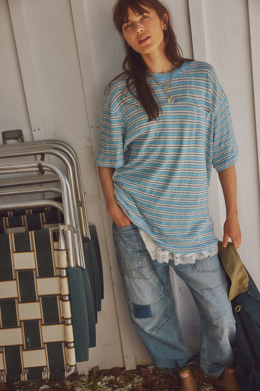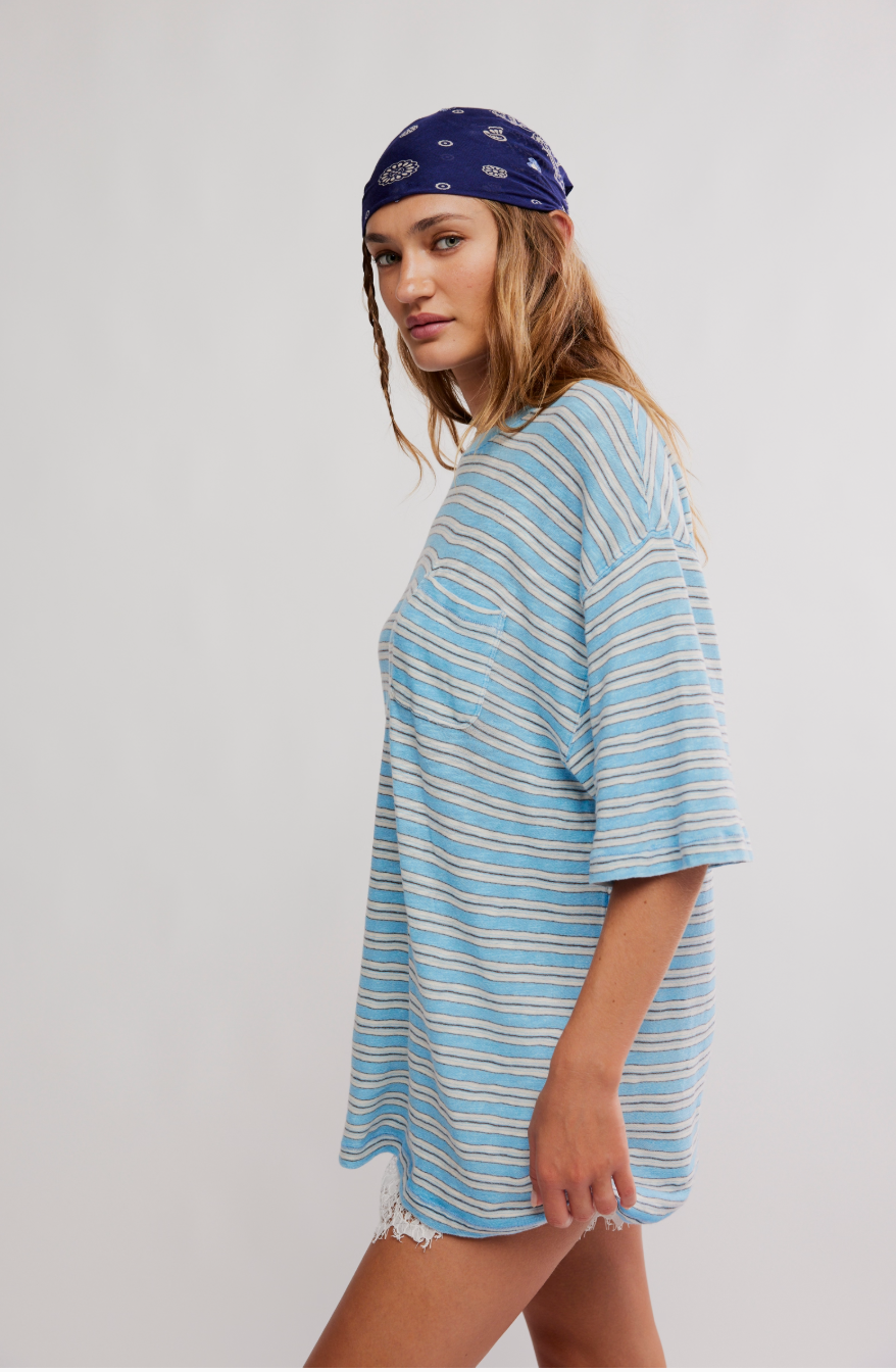 All Love Stripe Pocket Tee | Blissful Blue Combo