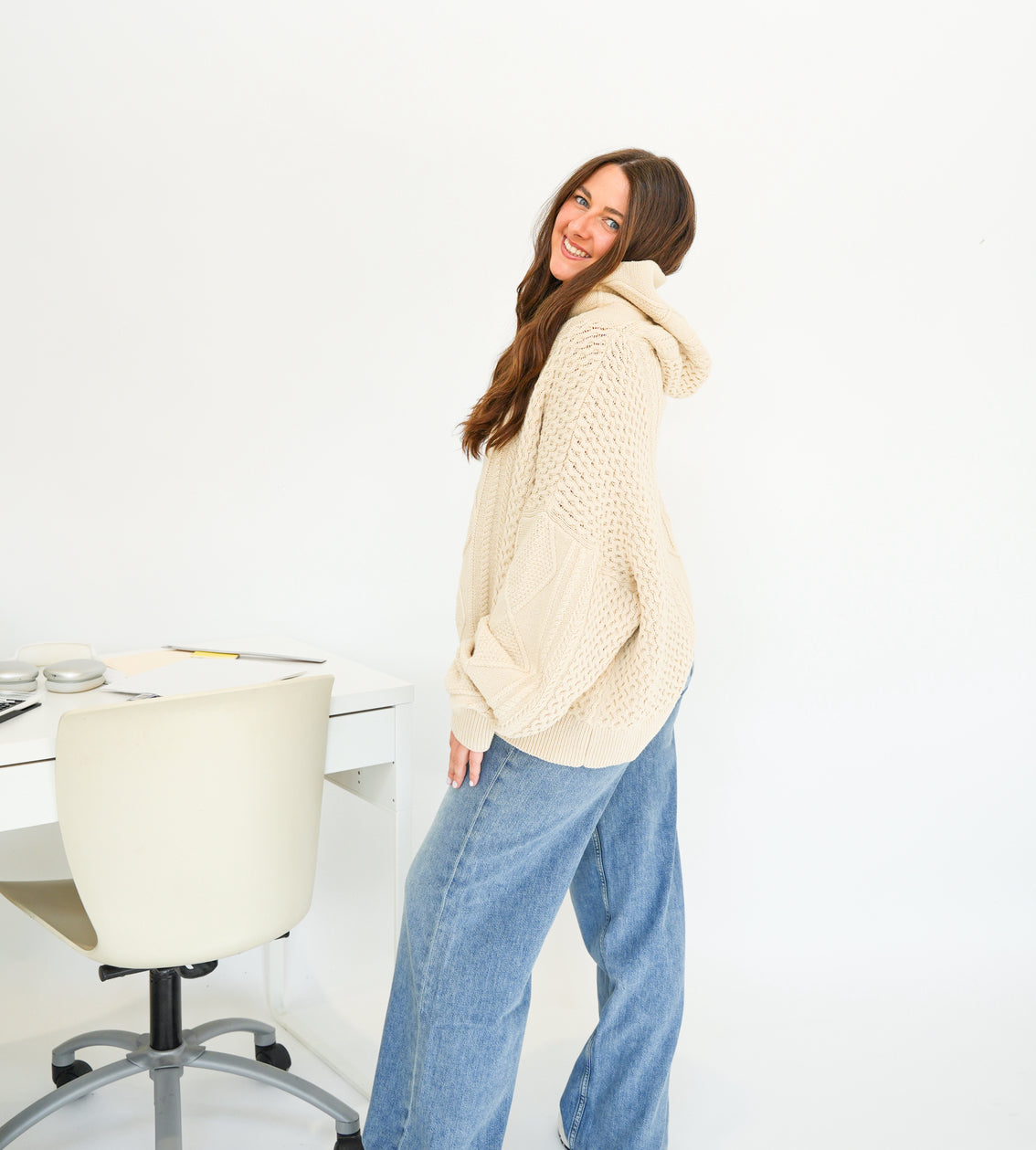 It doesn’t get cozier than this cable-knit hoodie, featured in the perfect oversized style with the perfect textured finish for that extra dose of detail.