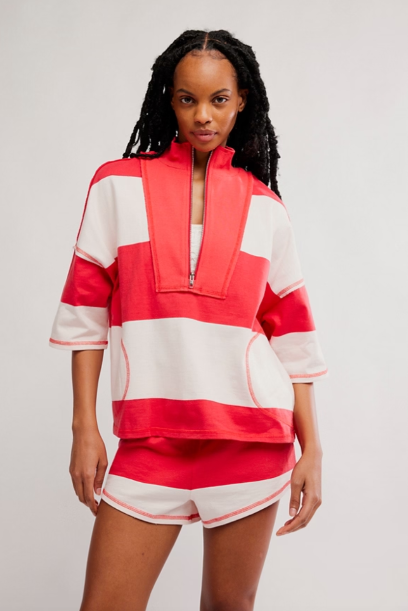 Sporty and striped, this coordinating set is perfect for off-duty days and one-and-done wear.