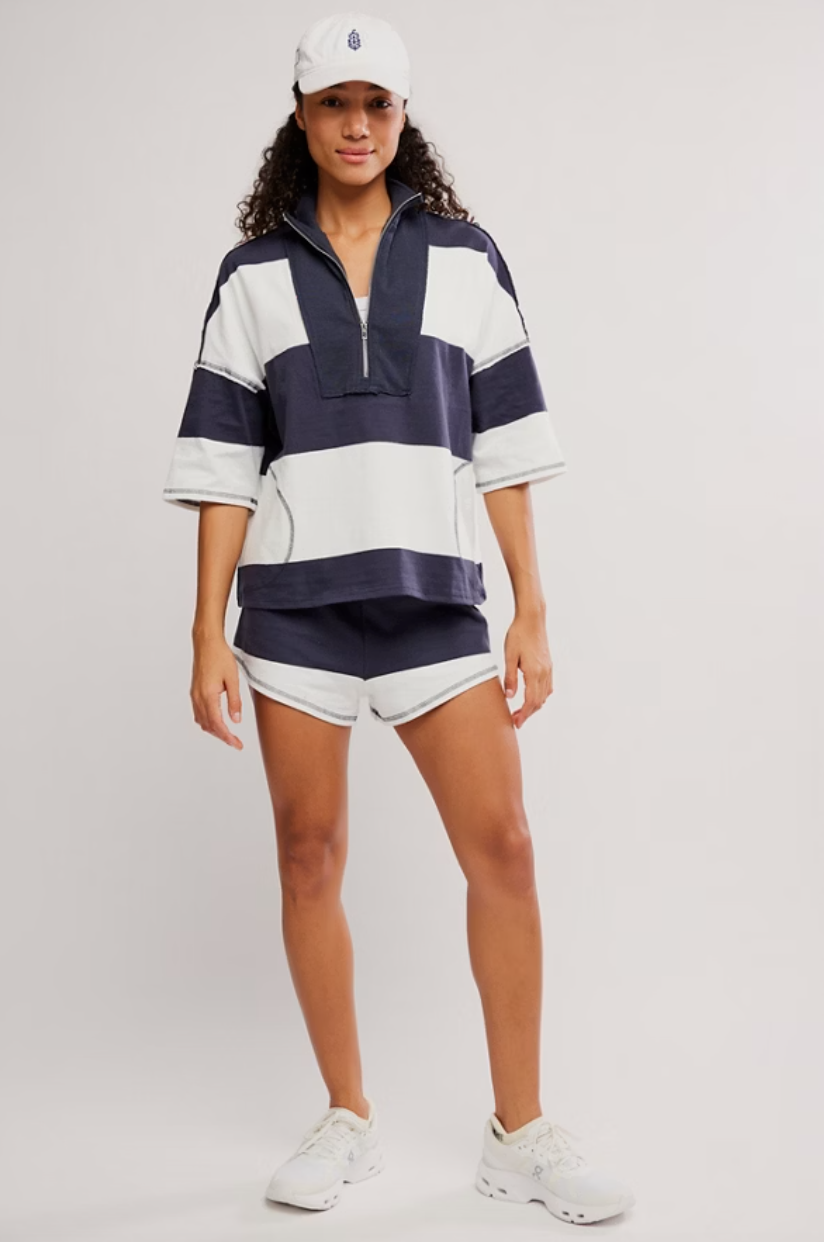 Sporty and striped, this coordinating set is perfect for off-duty days and one-and-done wear.