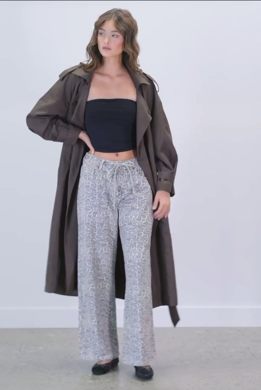 Elevate your fall wardrobe with the Shelly Leopard Wide Leg Pants. Featuring a bold leopard print and a stylish tie waist, these wide-leg pants bring effortless sophistication and comfort. Perfect for adding a touch of spice to your everyday looks while keeping you cozy and chic throughout the season.