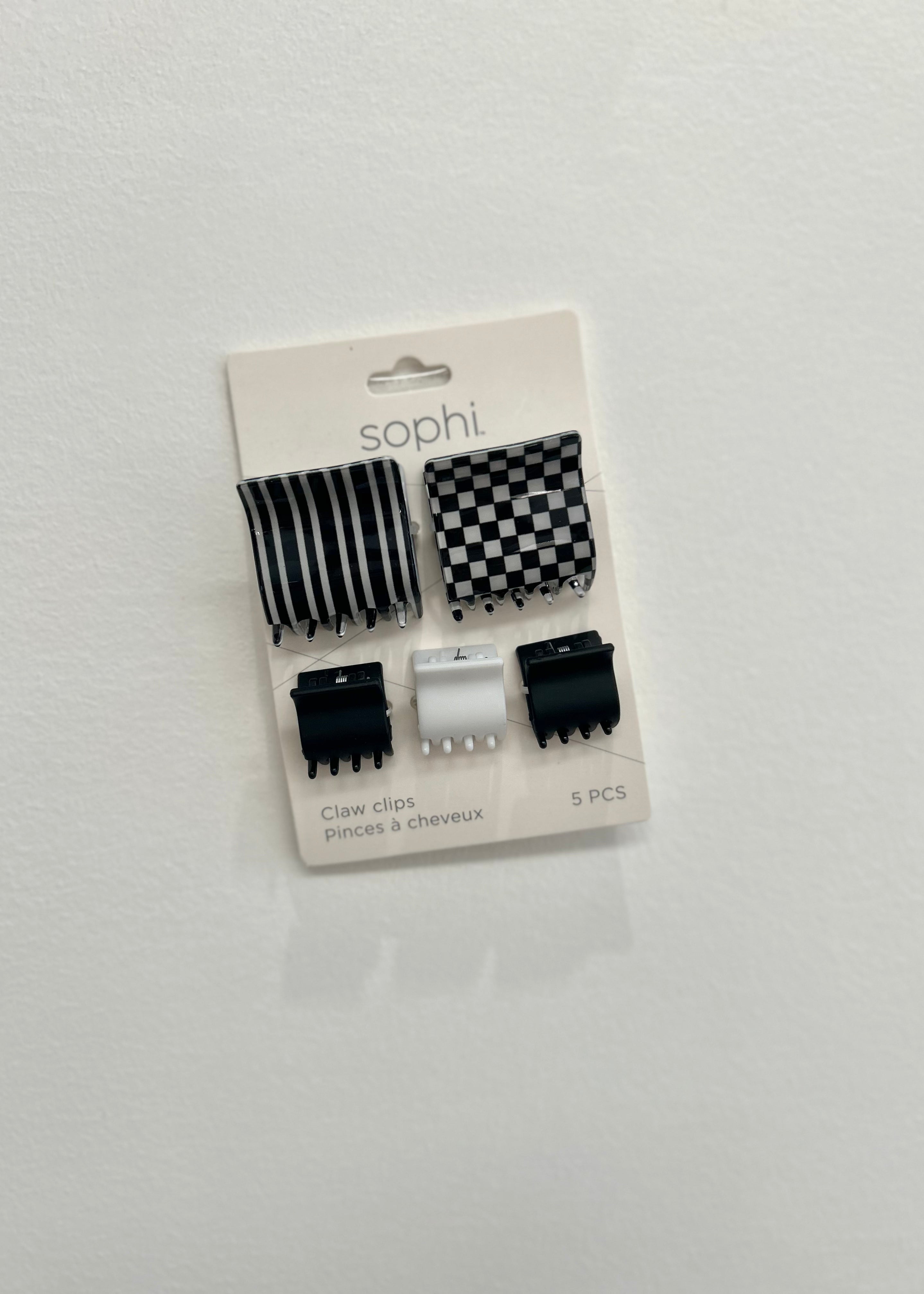 Elevate your hair game with the Sophi Claw Clip Small 5-piece set! These fun and stylish clips add a unique touch to any hairstyle, offering a variety of options to suit your individual look. Includes 5 small clips.