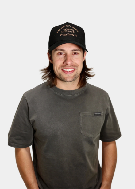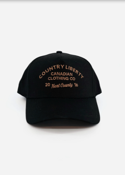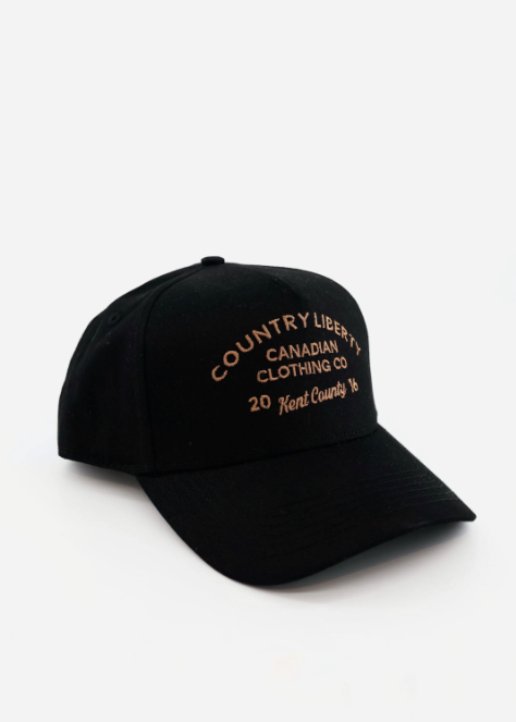 A tribute to our roots, this black cap with brown stitching highlights the birthplace of Country Liberty — Kent County, New Brunswick. Worn by those who take pride in where they come from.