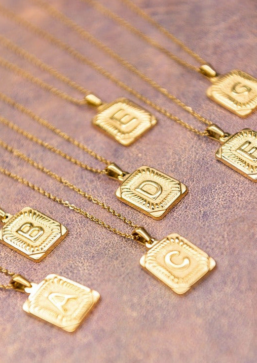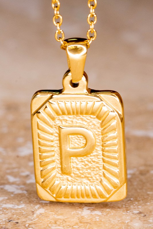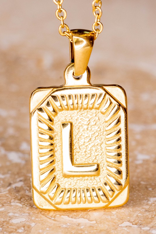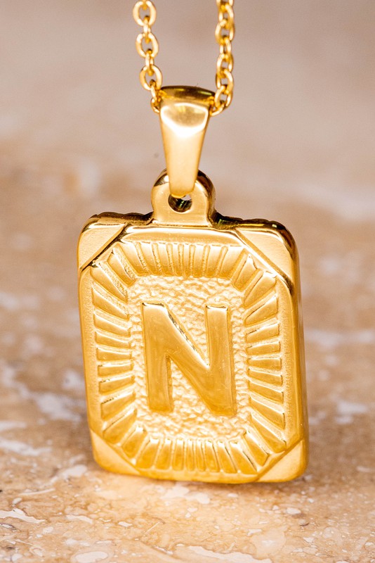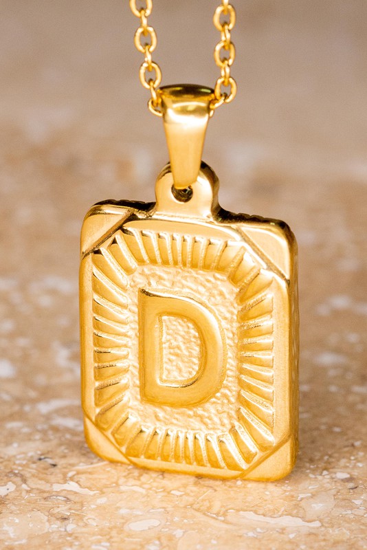 Initial pendant measures 5/8" wide x 3/4" tall.