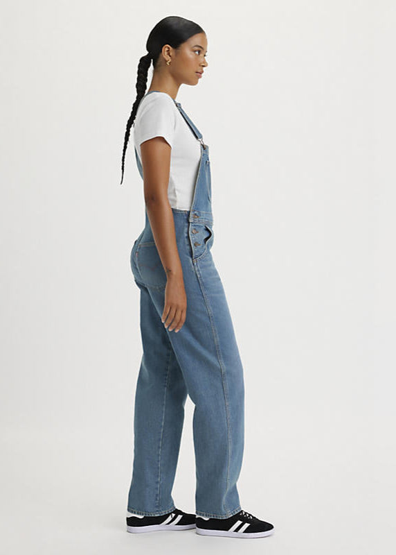 A versatile overall with a vintage style. A classic workwear essential. Adjustable straps. Iconic leather patch at back waist.