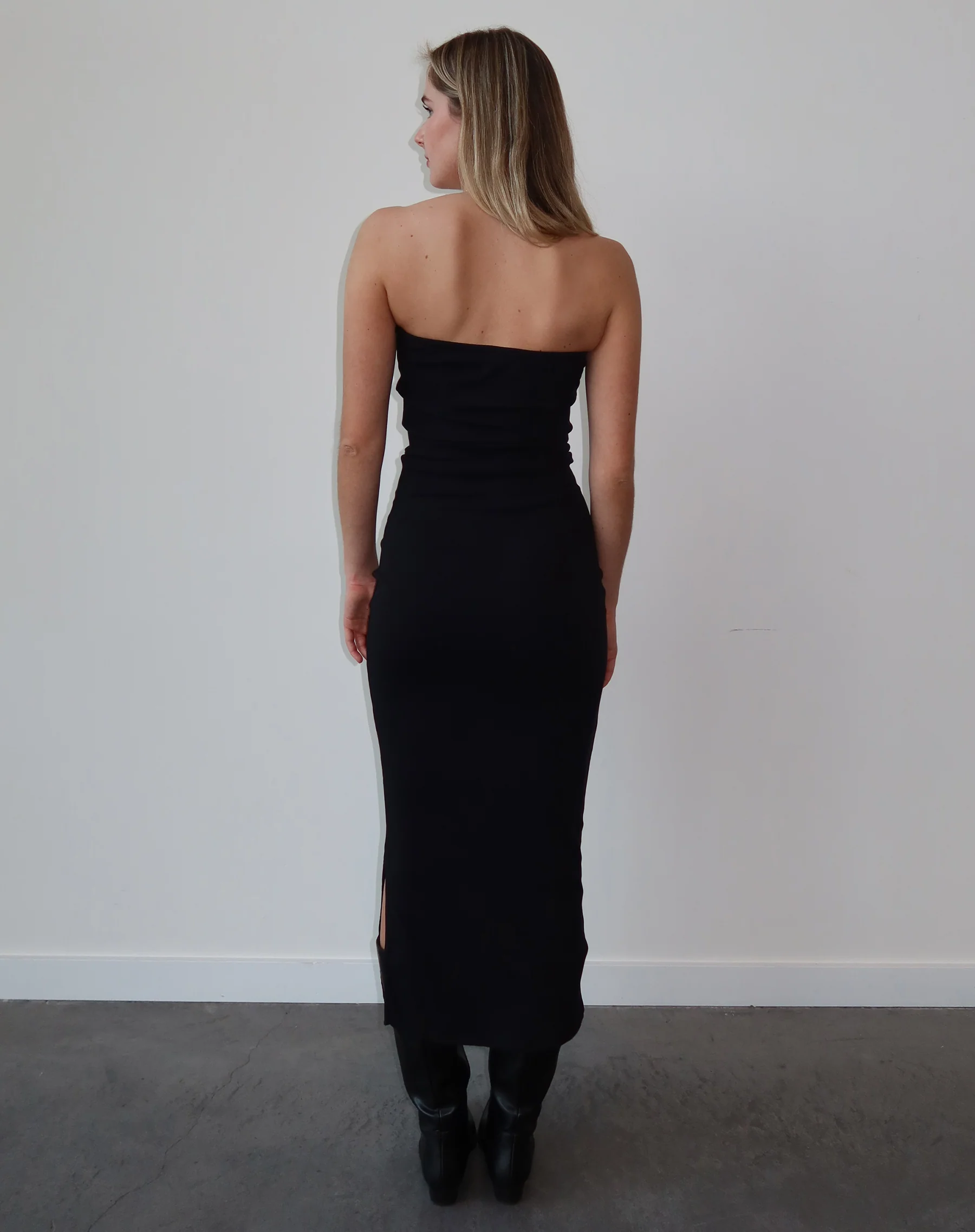 Sophisticated elegance is calling! Meet the Ribbed Tube Maxi Dress in Black. This dress is fitted throughout the body, with a sweetheart neckline and side slit. It will have you feeling your best all day, every day.