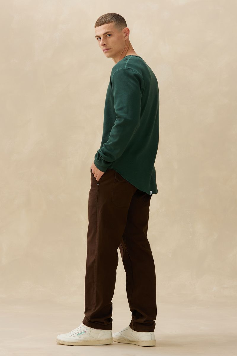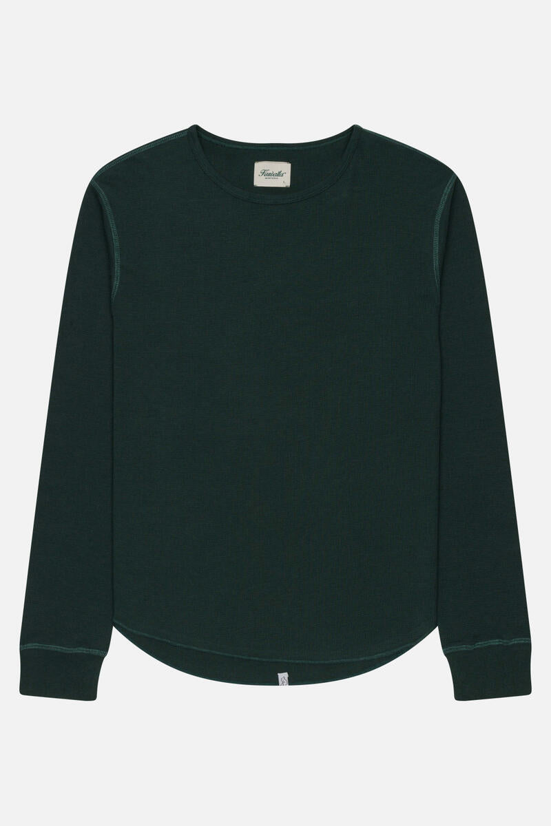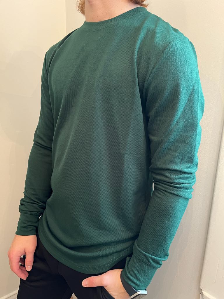 Thermal Hi-lo long sleeve features a curved hi-lo hem. Waffle thermal fabric with cover stitch seams and thumb holes for extra warmth and style. Ideal piece for layering all season long!