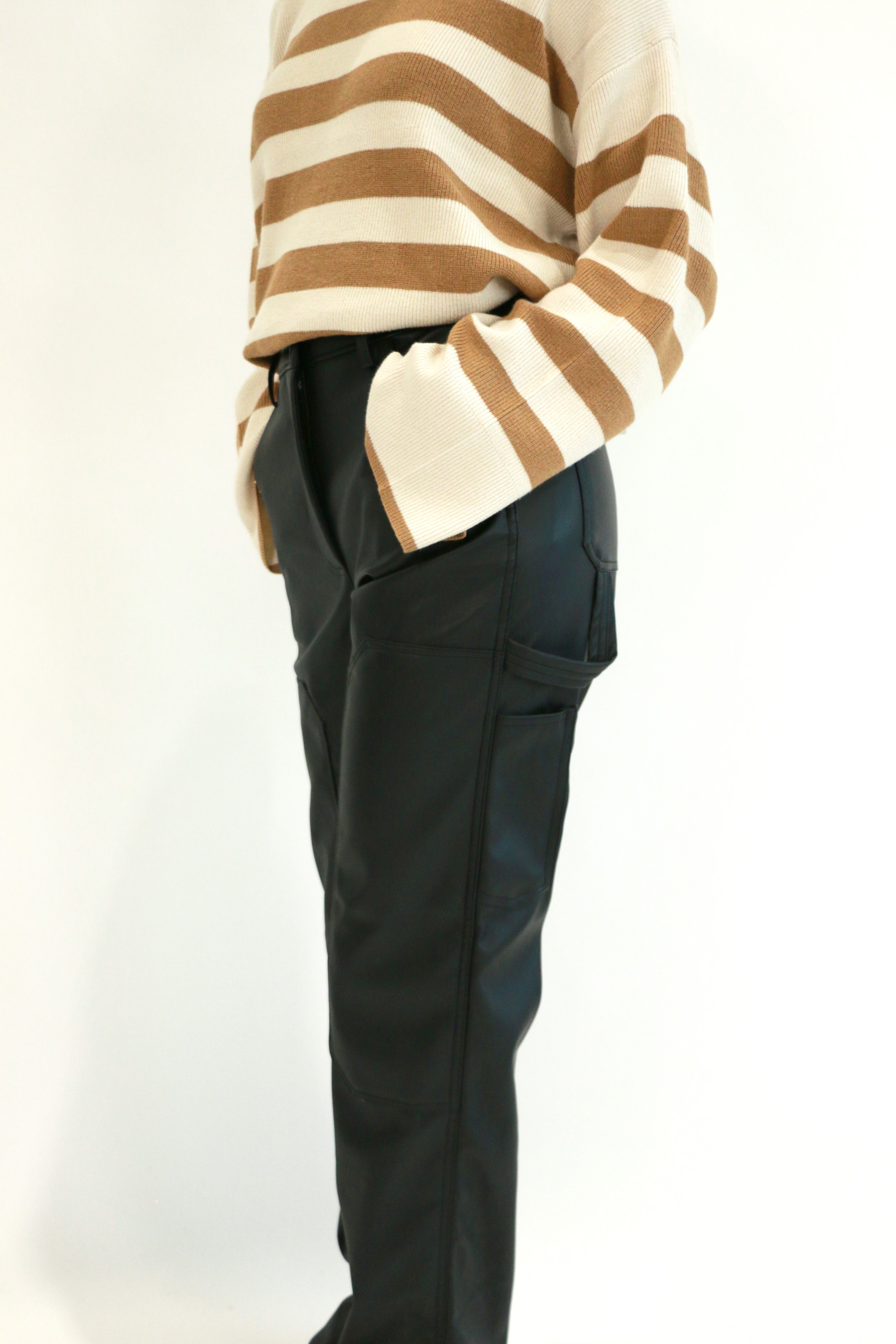 Details: Our luxuriously soft Carmine Vegan Leather Pant. Featuring a wide leg and cargo detailing, you'll make a statement wherever you go. Incorporate a touch of luxury and sophistication into your wardrobe.