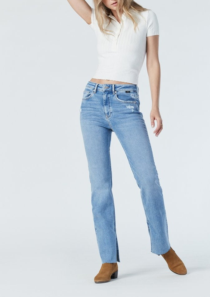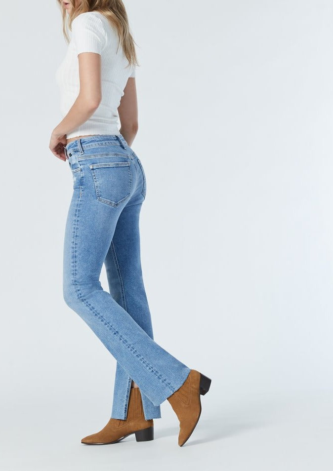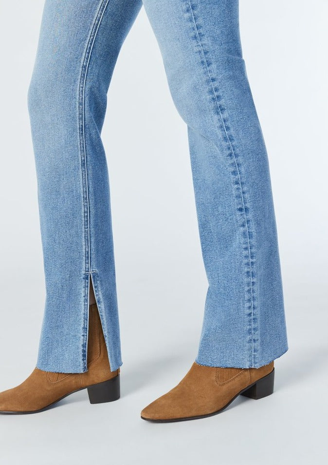 Maria is our high-rise jean that fits slim through the hip and thigh before ending in a flare. With an edgy slit at the hem, this pair brings a modern update to a nostalgic silhouette.