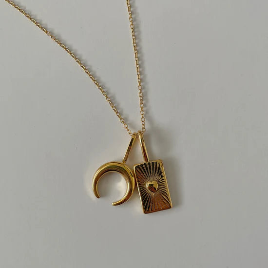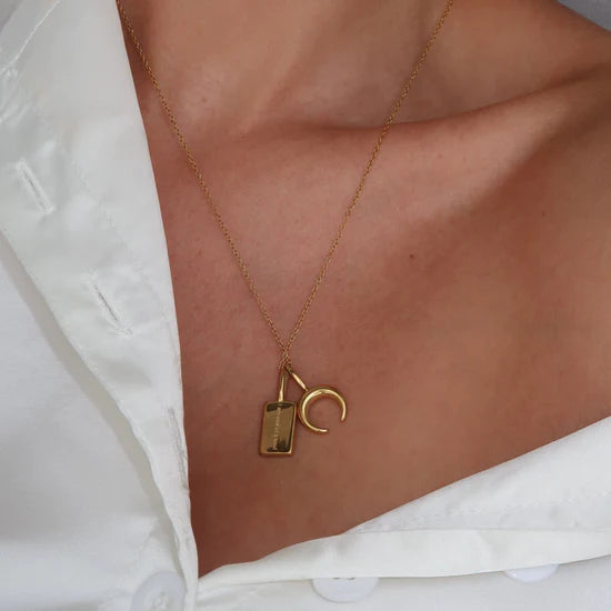 This affirmation necklace come with one crescent moon pendant and another heart pendant with ‘I AM ONE OF A KIND’ engraved at the back.