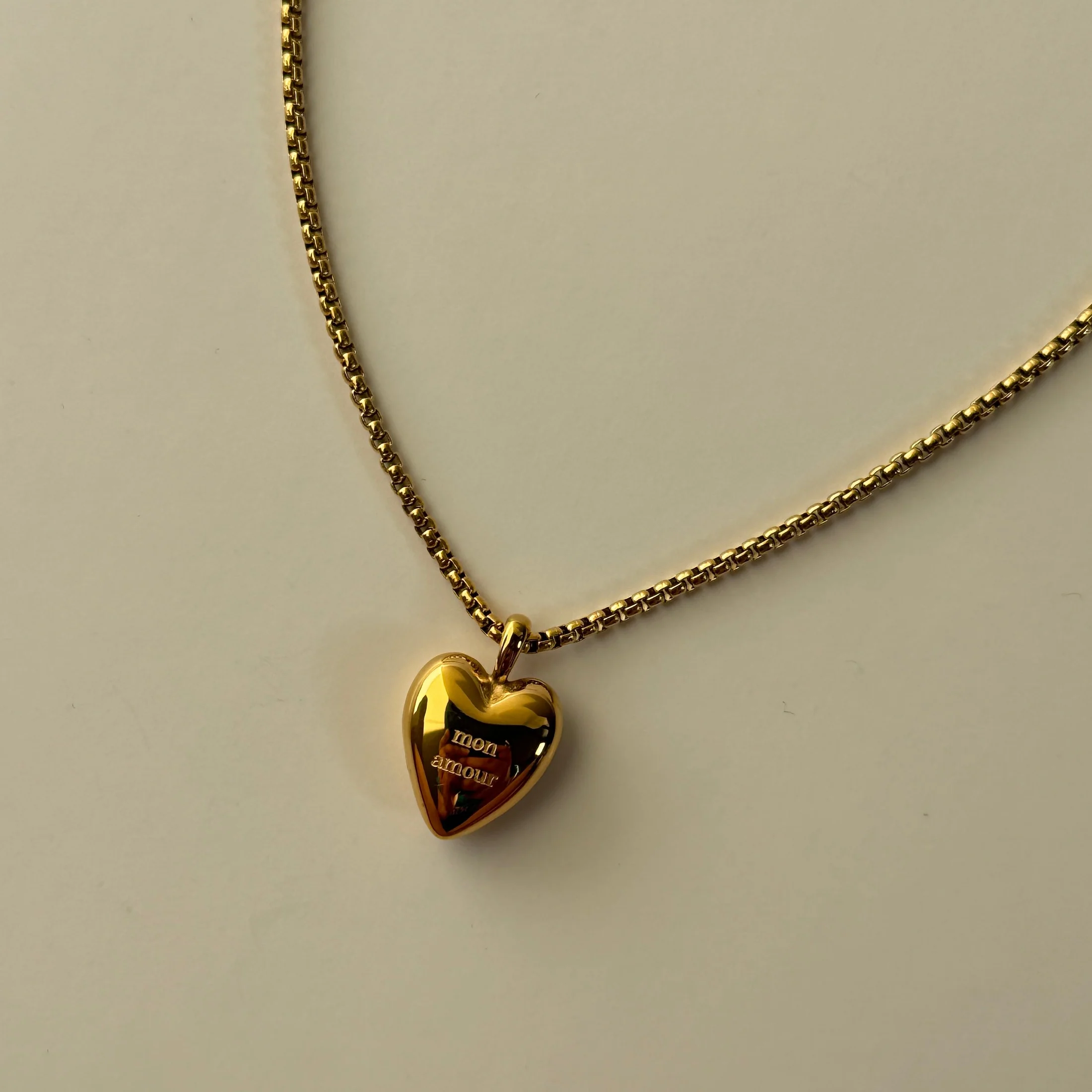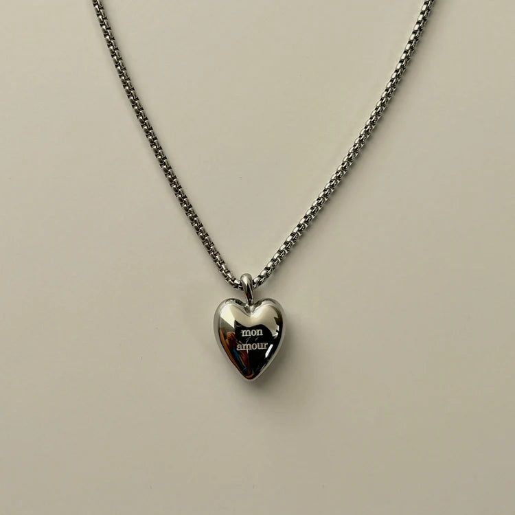 The Mon Amour Necklace showcases a romantic heart-shaped pendant. Perfect for showing your affection, this necklace is a timeless treasure that will make any outfit look elegant and sophisticated.