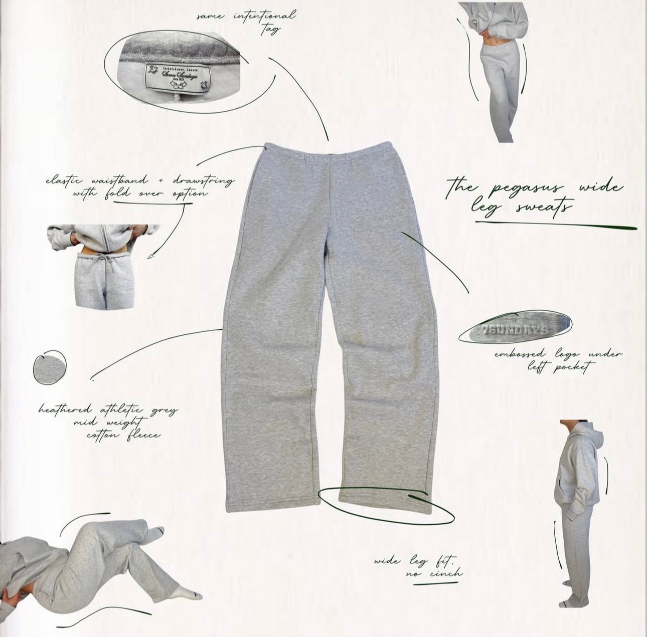 These sweatpants are part of the second sweatsuit in our collection, crafted from premium 380 GSM cotton fleece for a soft, medium-weight feel. Featuring a modern wide-leg silhouette with no cinch at the bottom for a clean, elevated look, they include a one-inch elastic waistband with an internal drawstring for an adjustable fit and fold-over option. Finished with an embossed “7SUNDAYS” just below the left pocket.