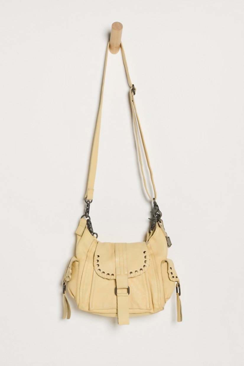 Never leave anything behind with this so-cool distressed leather mini bag, featured in a slouchy style with a roomy interior and exterior pockets for all your essentials. When it’s time to get going, throw it across your body with the longer strap or keep it close to you with the additional shorter strap.