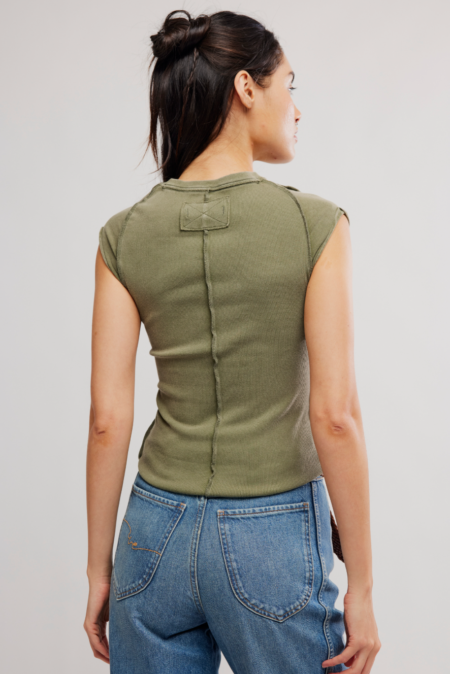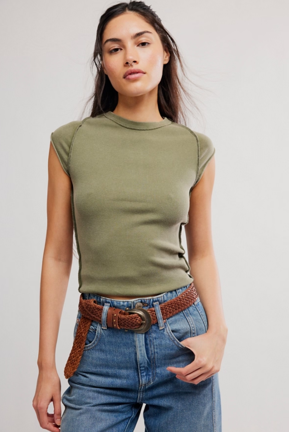 Your new favourite timeless tee from the We The Free collection, featured in a soft, ribbed knit fabrication and slim-fitting silhouette with raised seam detailing and cap-inspired sleeves.