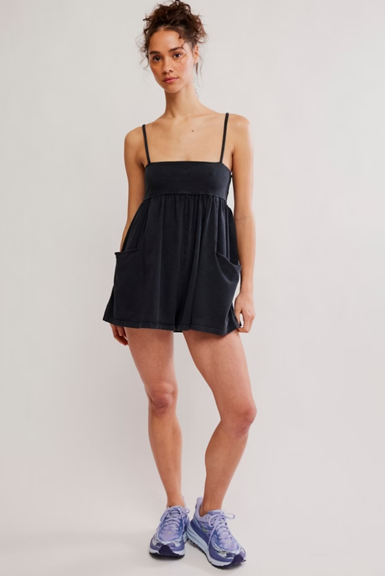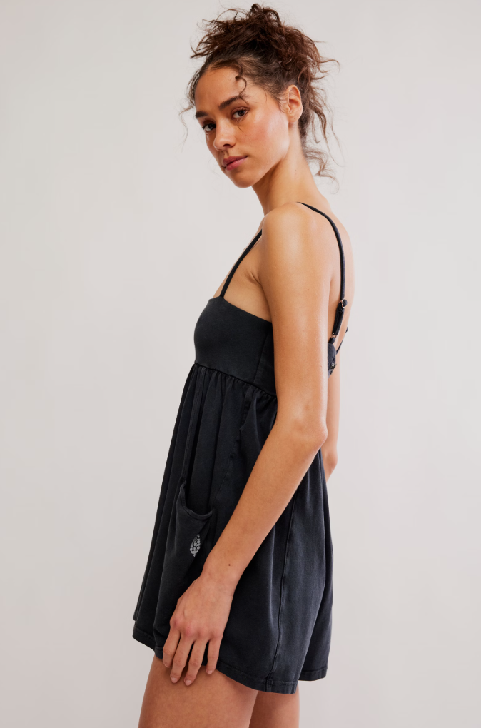 A new addition to our softest collection, this strappy romper offers a mini silhouette with a squared off neckline and relaxed, breezy shorts.