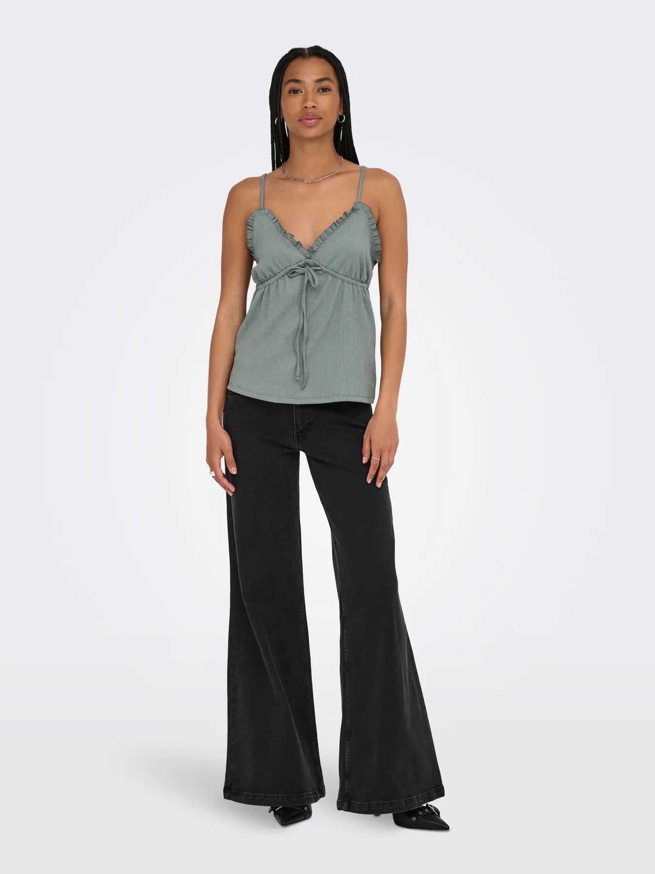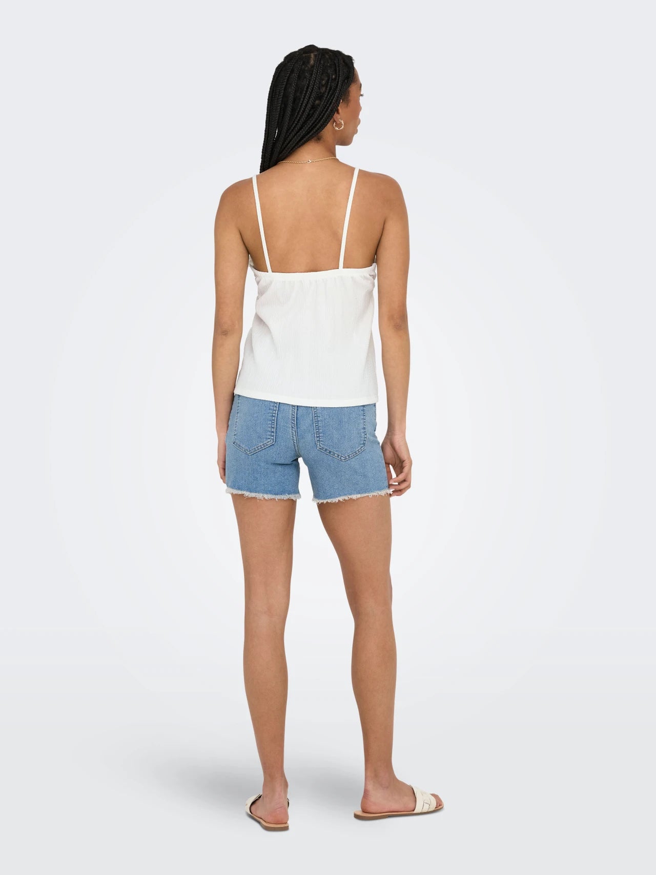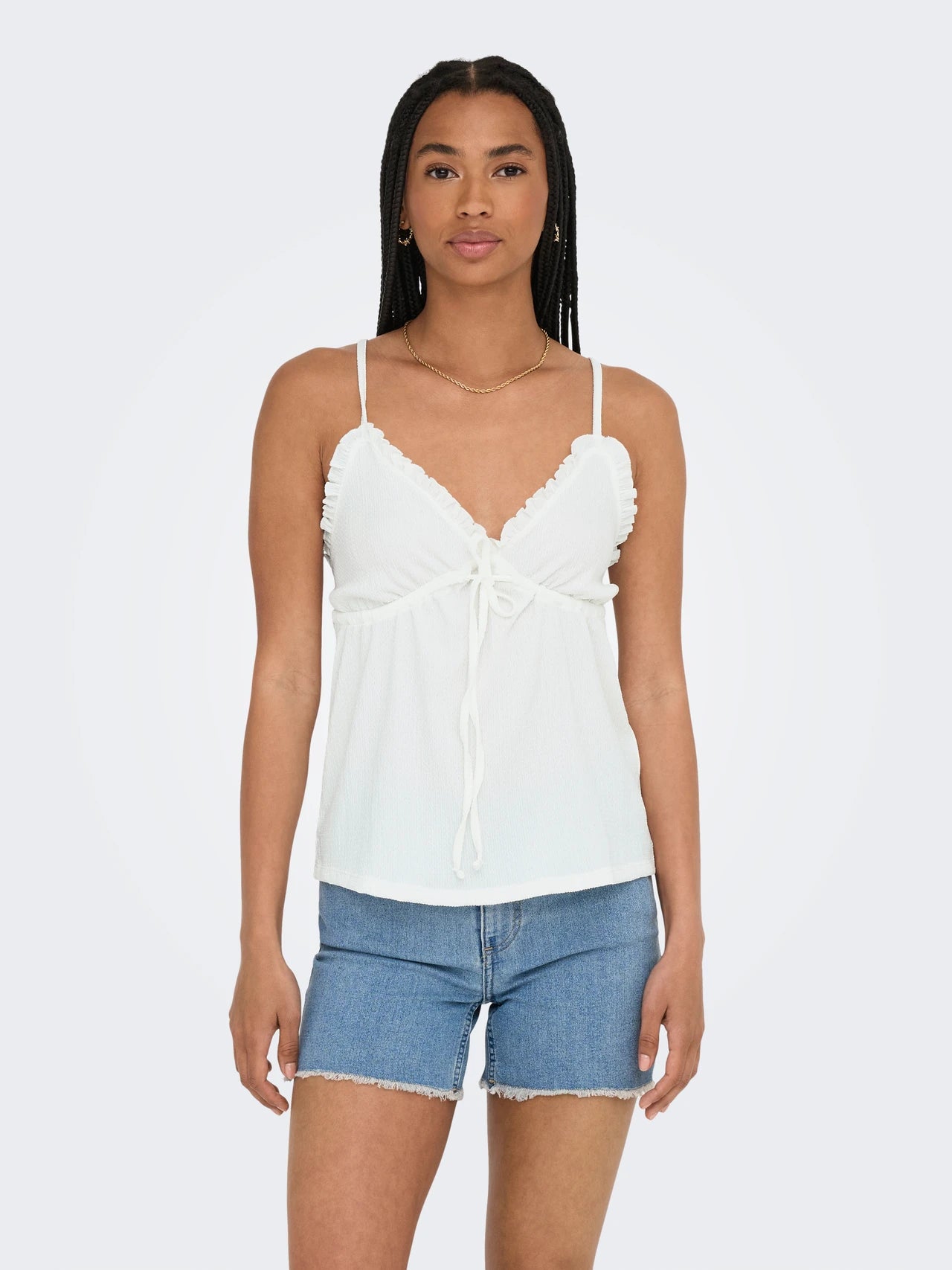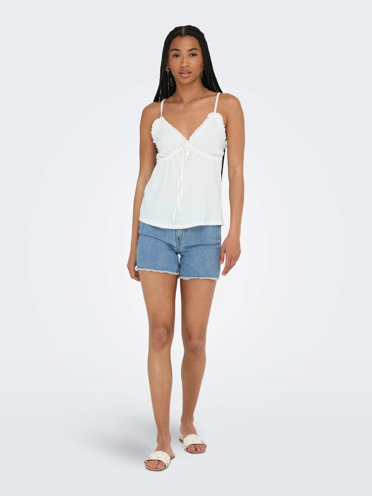 Change your everyday outfit in a second by adding a feminine top for a soft, clean expression.