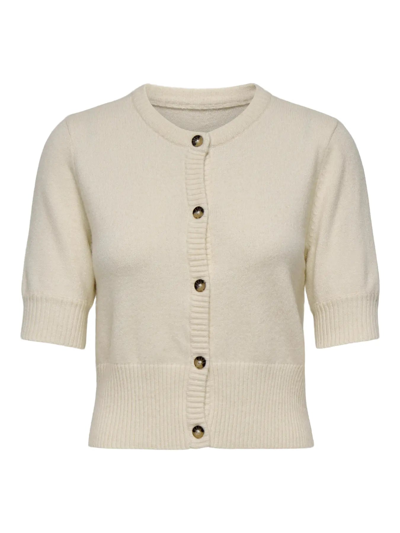 Complete your look with a knitted cardigan essential in any wardrobe and perfect for both winter days and summer evenings. Flat knit is a type of knitting characterised by its flexibility, comfort, and clean look. - Product Type : Knitted cardigan - Neck : Round Neck - Sleeve : 2/4 sleeves - Closing : Button fastening - Fit : Regular Fit