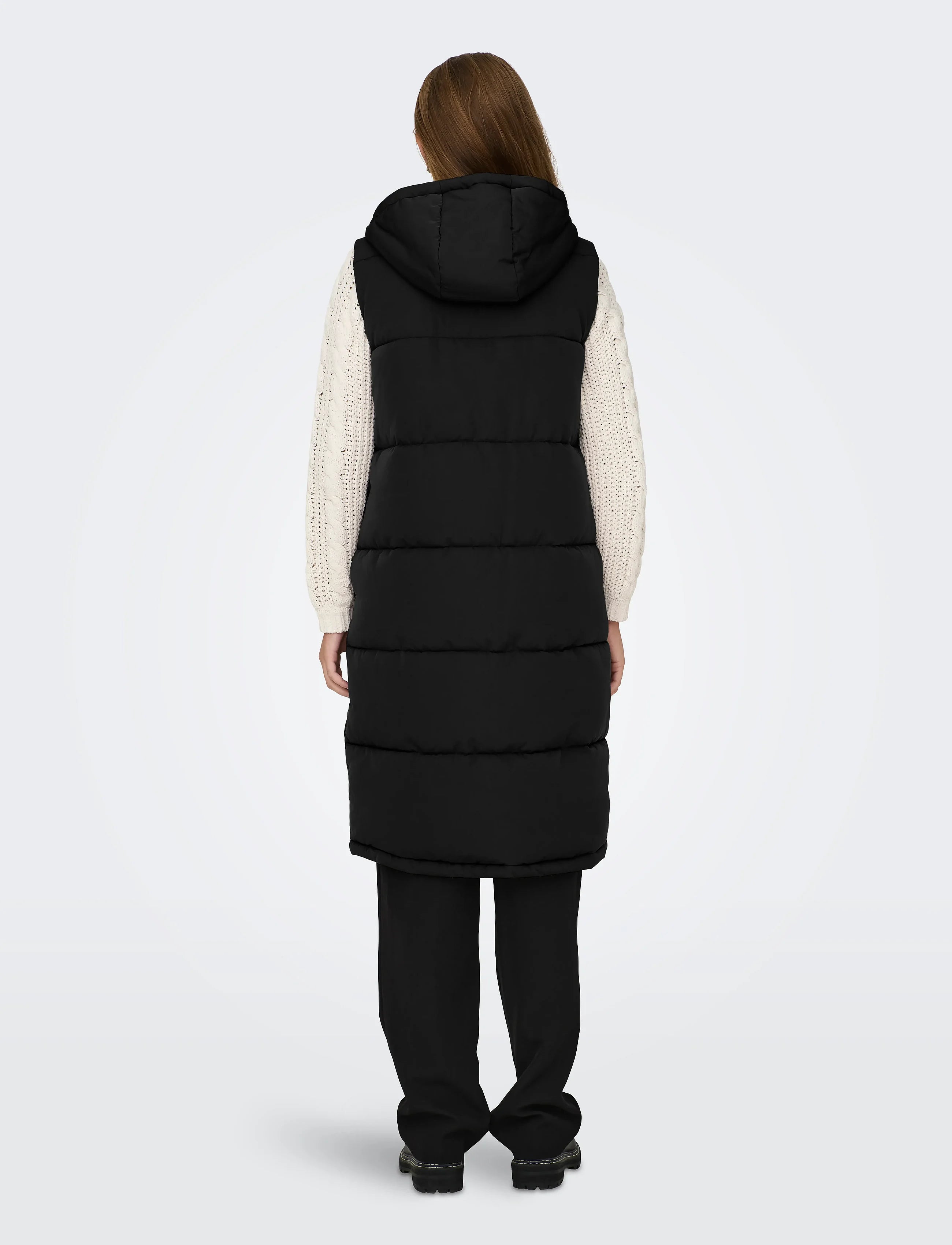 • Long, sleeveless vest