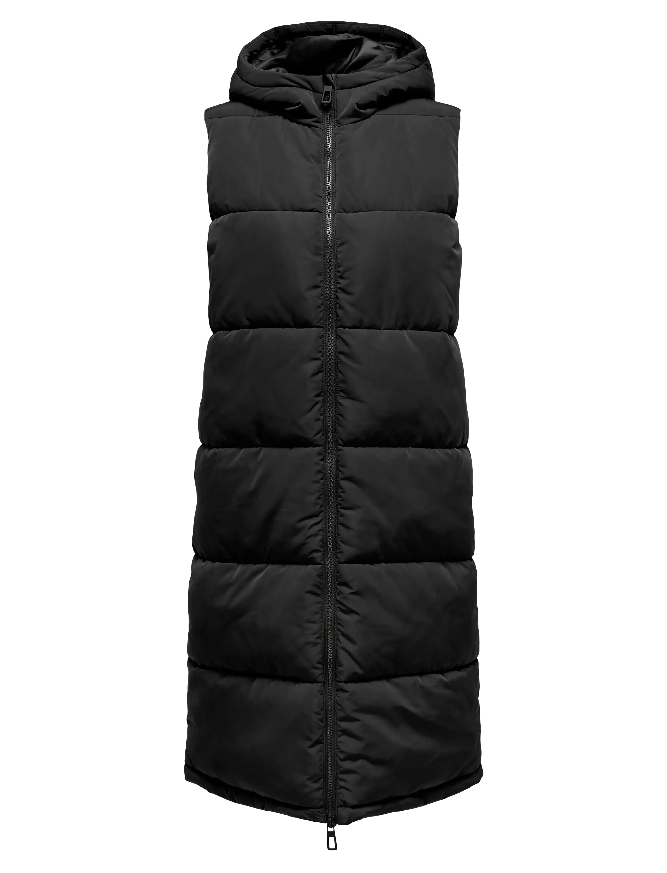 This long, sleeveless vest is perfect for layering in the colder months. It features a hood and a zipper closure. The vest is made from a soft and comfortable fabric that is both warm and stylish.