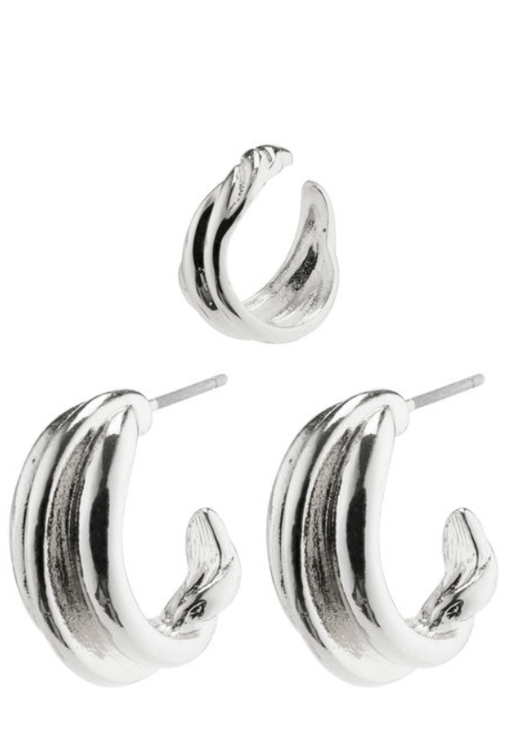 These chunky hoops exude a vintage-inspired and classic design with wavy and feminine silhouettes. The trendy matching ear cuff gives the earrings an art deco feel and makes the set the perfect stylish addition to your classy or casual everyday looks.