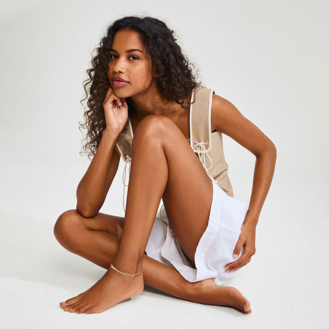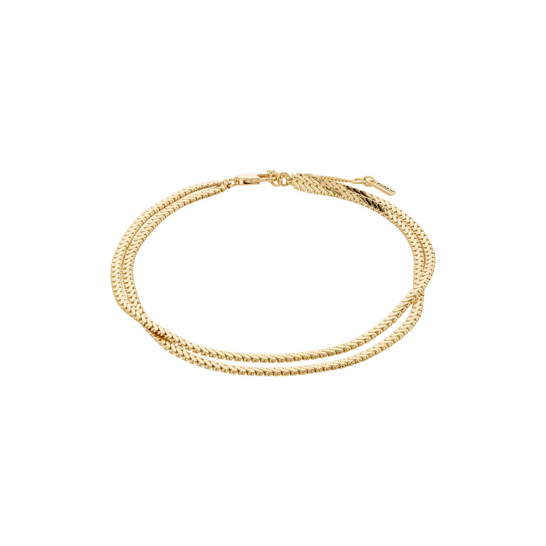 Wherever you go! The gold-plated or silver-plated JELONA anklet is the perfect new addition to your accessory collection. Featuring two flat snake chains, also known as Herringbone chains, you'll achieve a unique layered look. The smooth links beautifully catch the light, adding an extra touch of summer vibes to your outfit. Ideal for sun-kissed ankles and sandals, the JELONA ankle chain is both elegant and effortlessly stylish. Pair it with your summer favourites for a chic beachy feel. Crafted from 99% recycled material, allowing you to shine with a clear conscience.