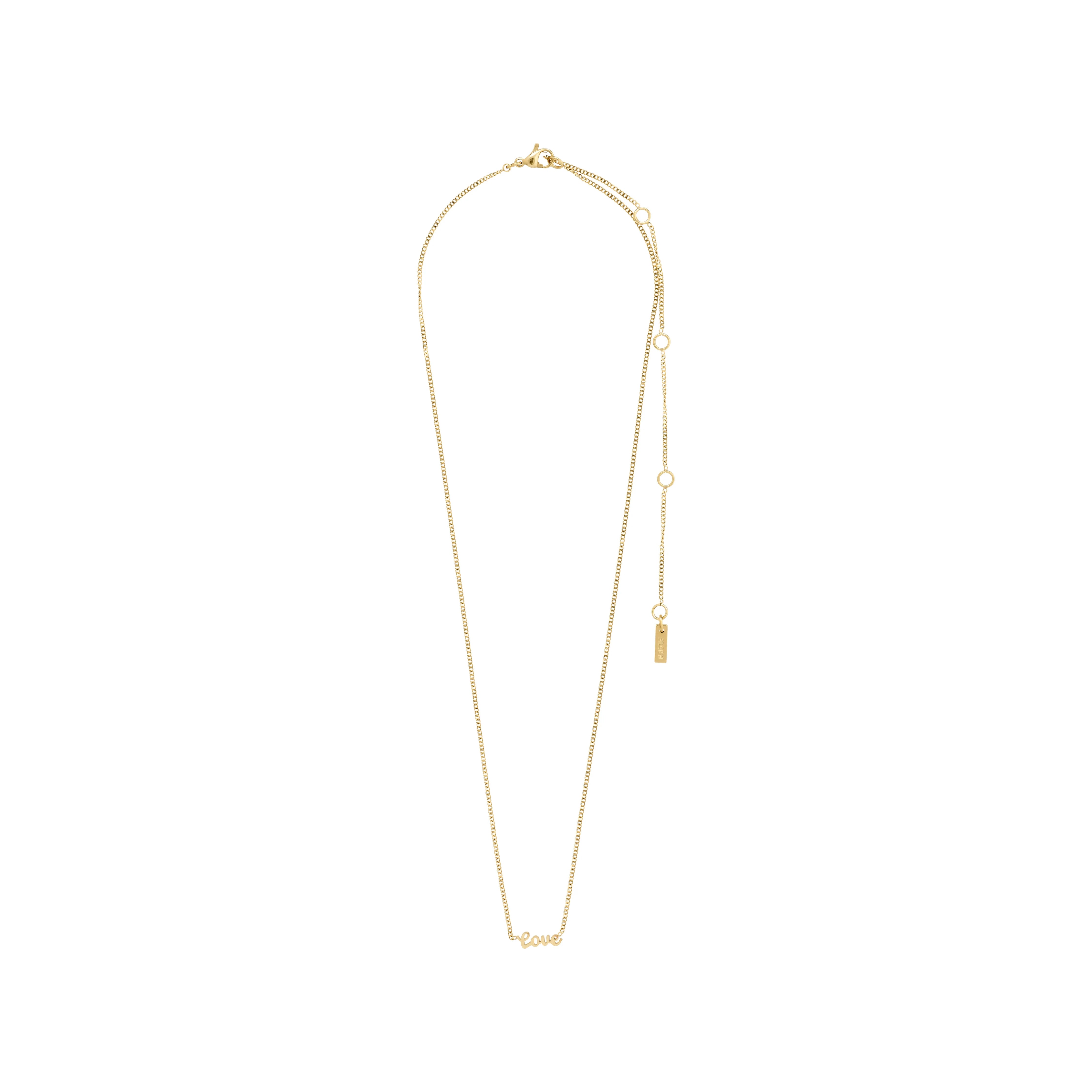 Reflect your love, and wear your mantra with pride! With your new signature piece, you get a sleek, gold-plated necklace featuring a petite pendant in cursive script with the word 'LOVE'. A genderless piece that can be worn by anyone and makes an excellent gift idea for someone you cherish. Style it solo or layer up for a personalized look. No matter how you choose to style the chain, which measures 38 cm + 9 cm extension chain, it is a must-have in your daily wear collection. And guess what - it's waterproof and made from 99% recycled material with care for our shared planet. Reflect your love, every day, every way.