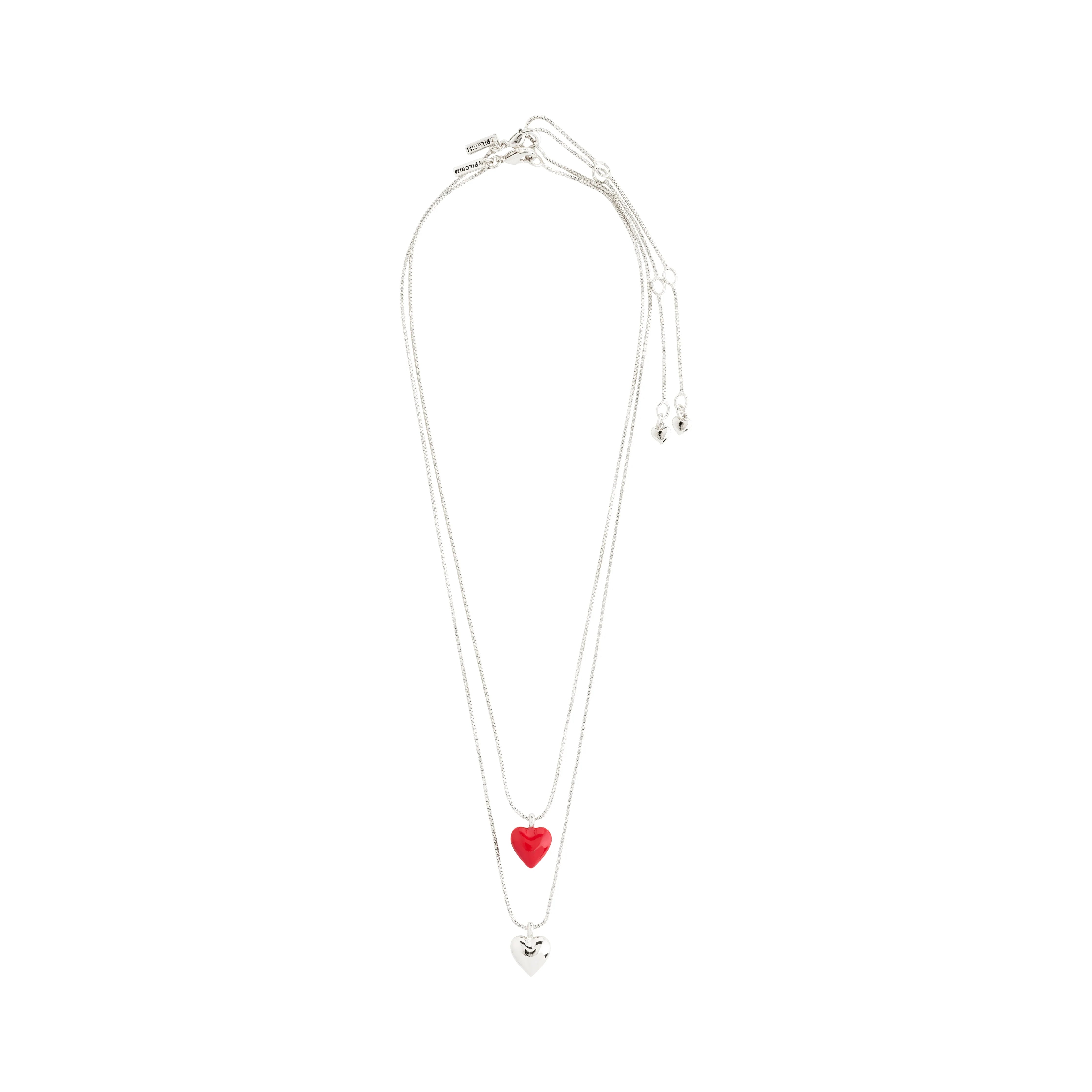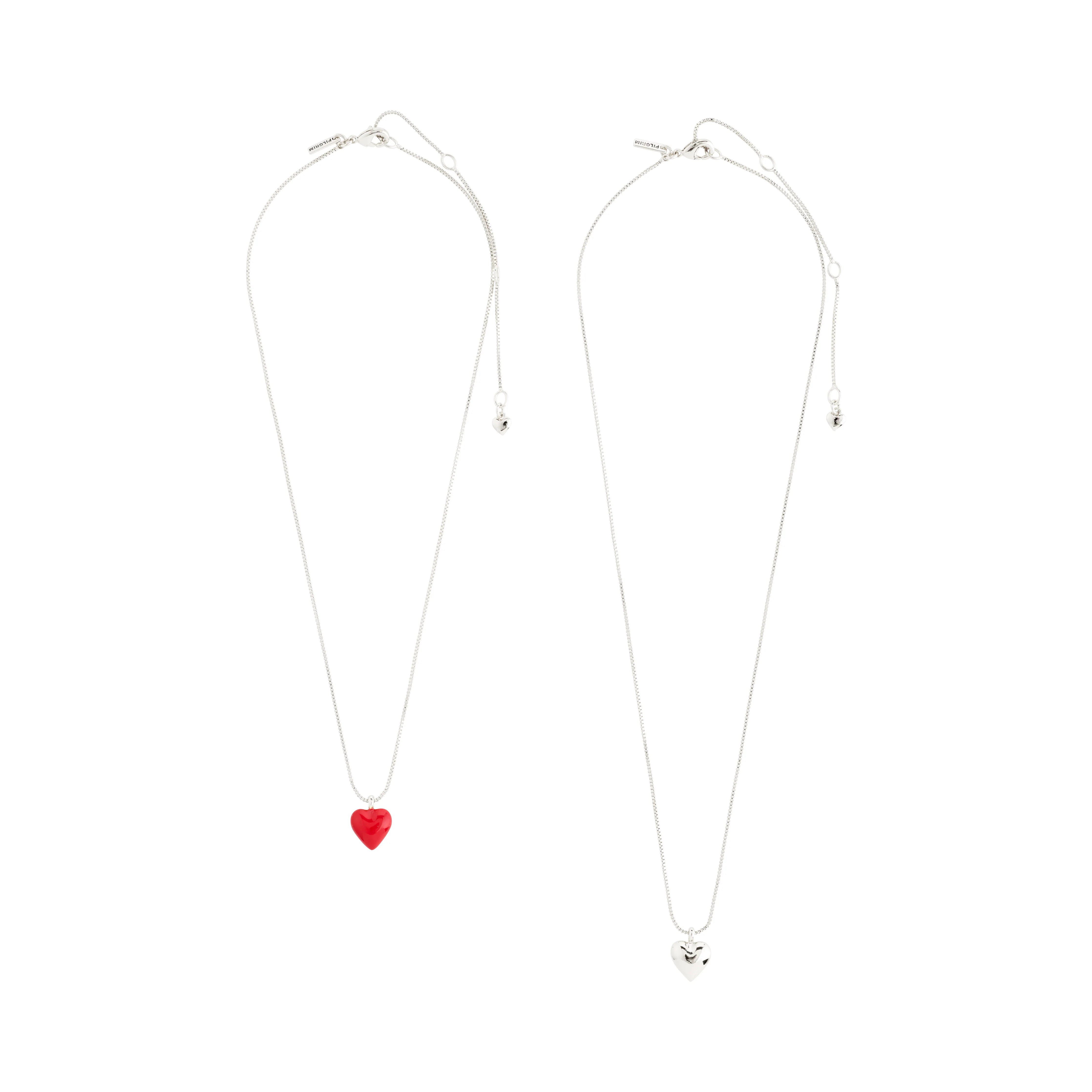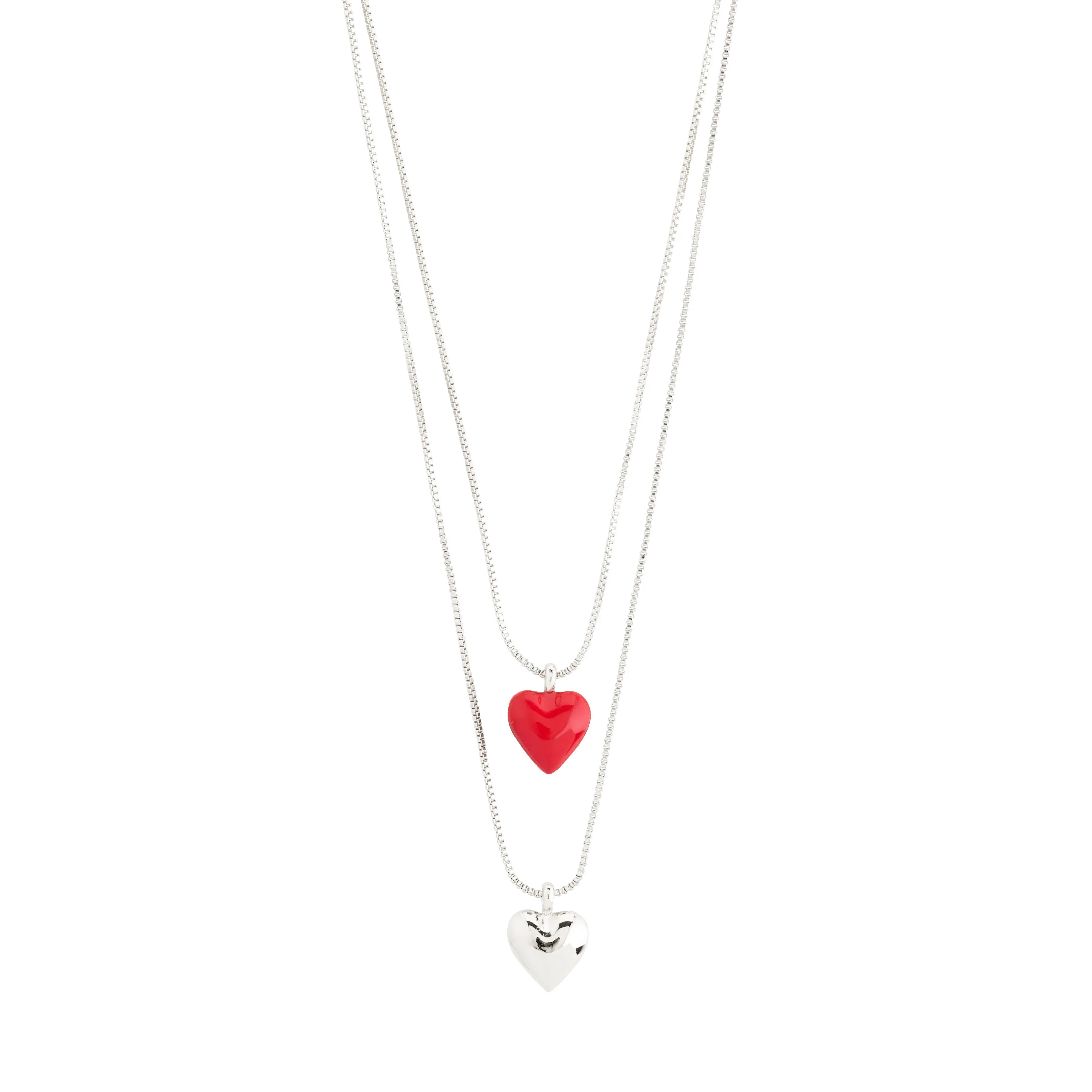 Feel the love! Pilgrim's silver-plated heart necklaces give you 2 beautiful chains in one set. Both chains are classic slim box chains: one with a silver-plated puffy heart pendant and another with a heart pendant in red enamel. Sweet and simple - the perfect choice for effortless styles this season. Wear them together for a chic layered look, or share them with your partner or BFF - and spread some love. The chain measures 36/42 cm with a 9 cm extension chain and is made from 97% recycled materials, so you can feel good about your fashion-forward choice.