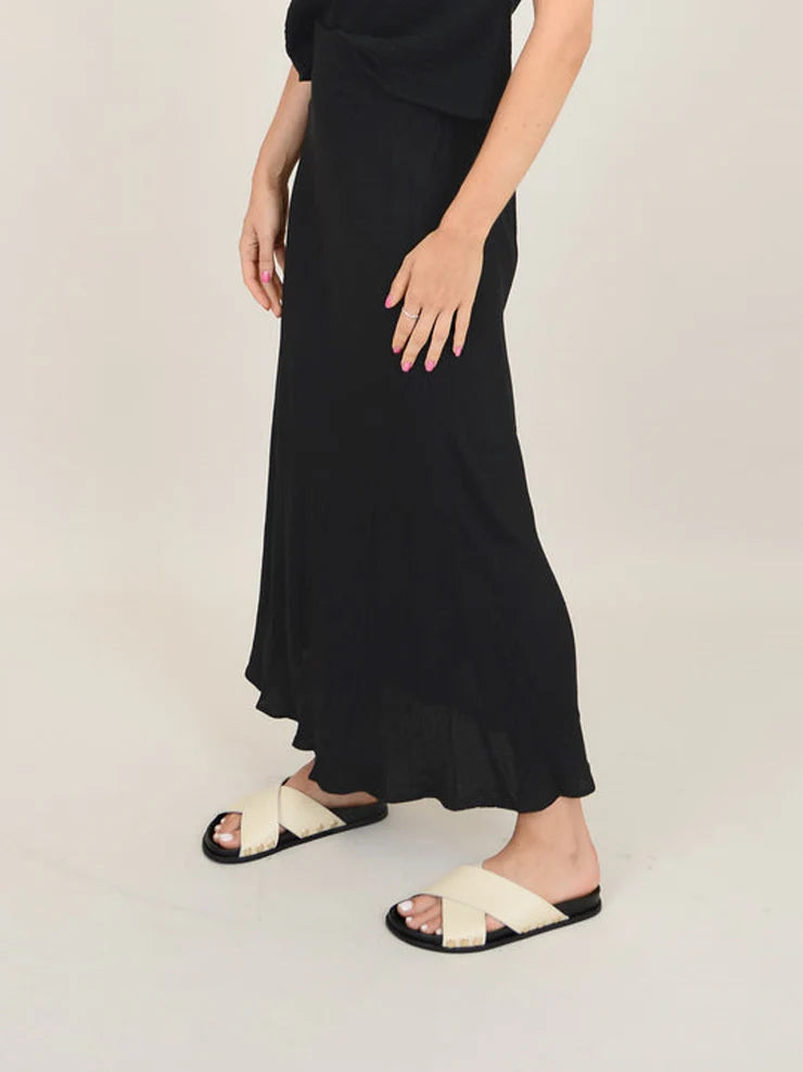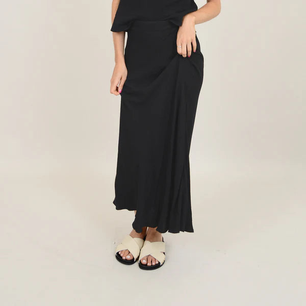 Details: Indulge in elegance and sophistication with the Alicent Skirt in Black. Its silky smooth fabric drapes beautifully for a flowy and luxurious feel. Make a statement in this effortlessly elegant piece.