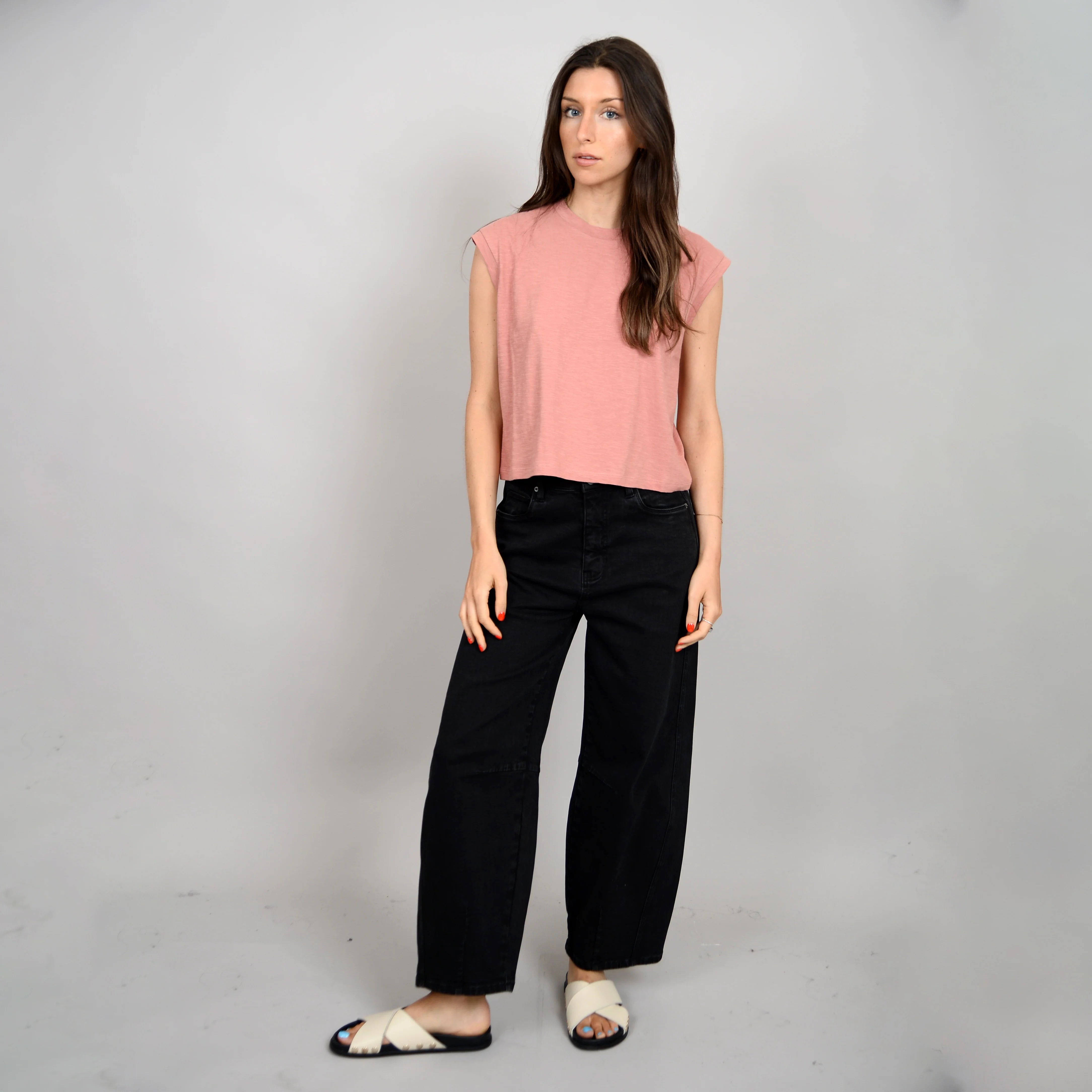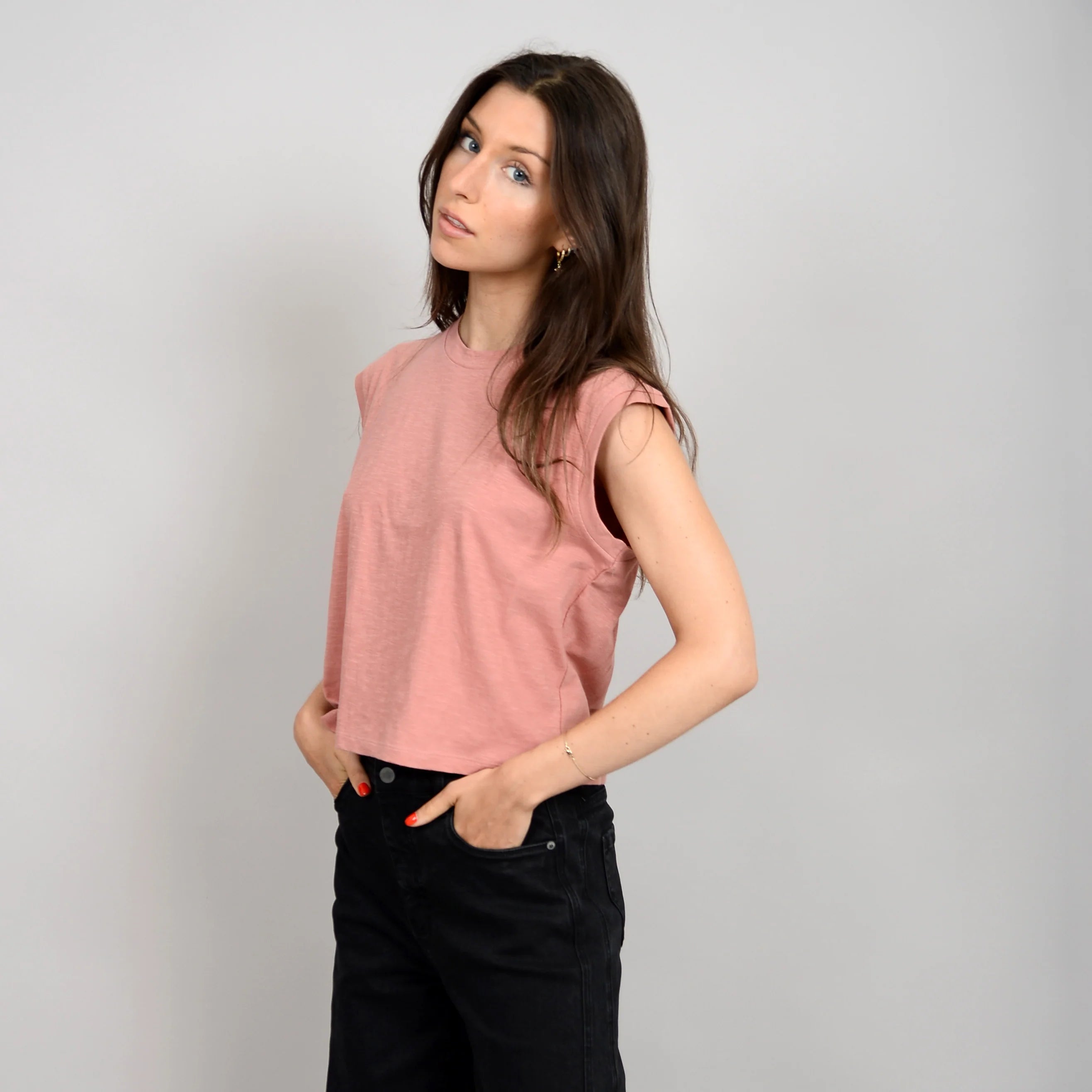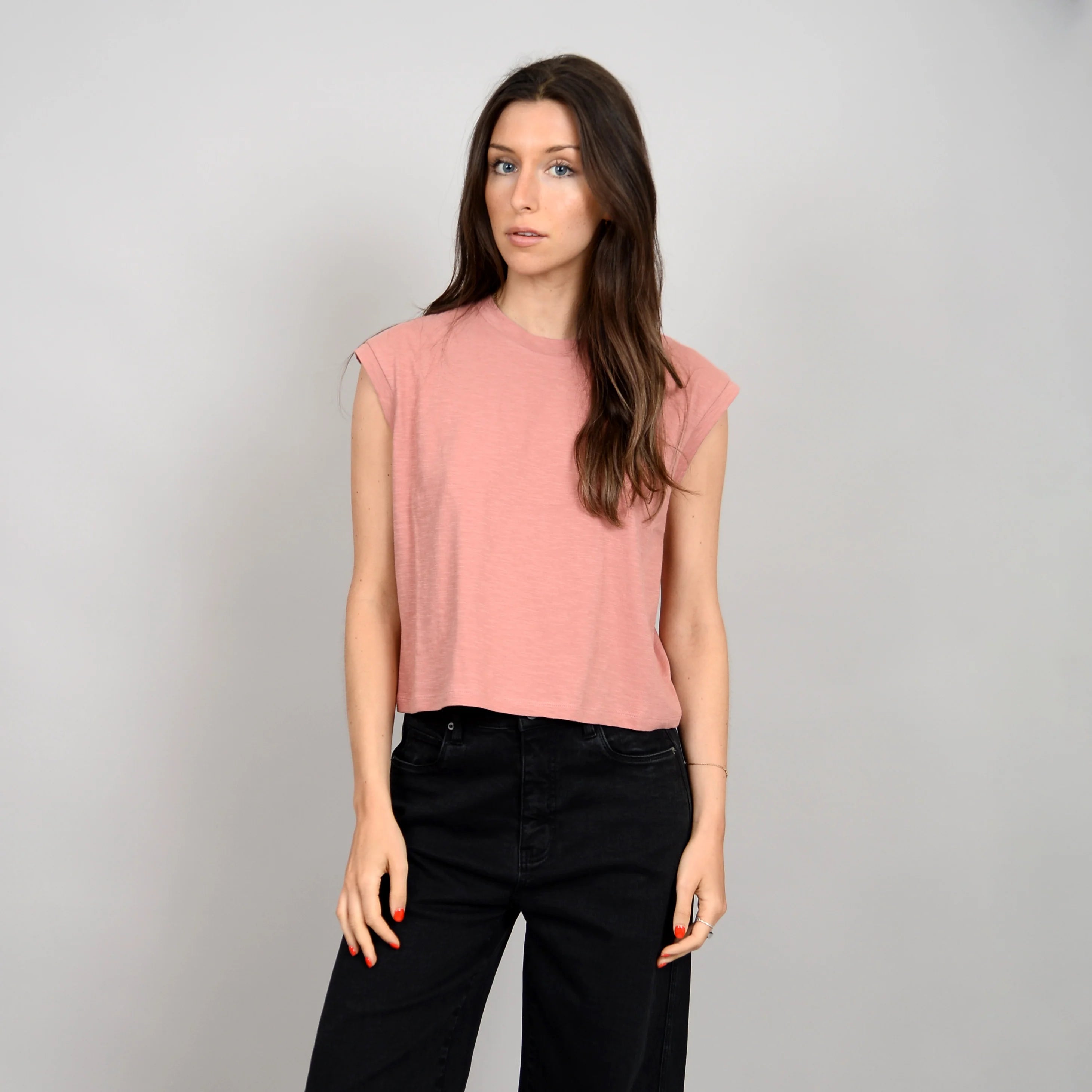 Details: Cotton, cap sleeve tee, terracotta colour, the perfect summer tee.