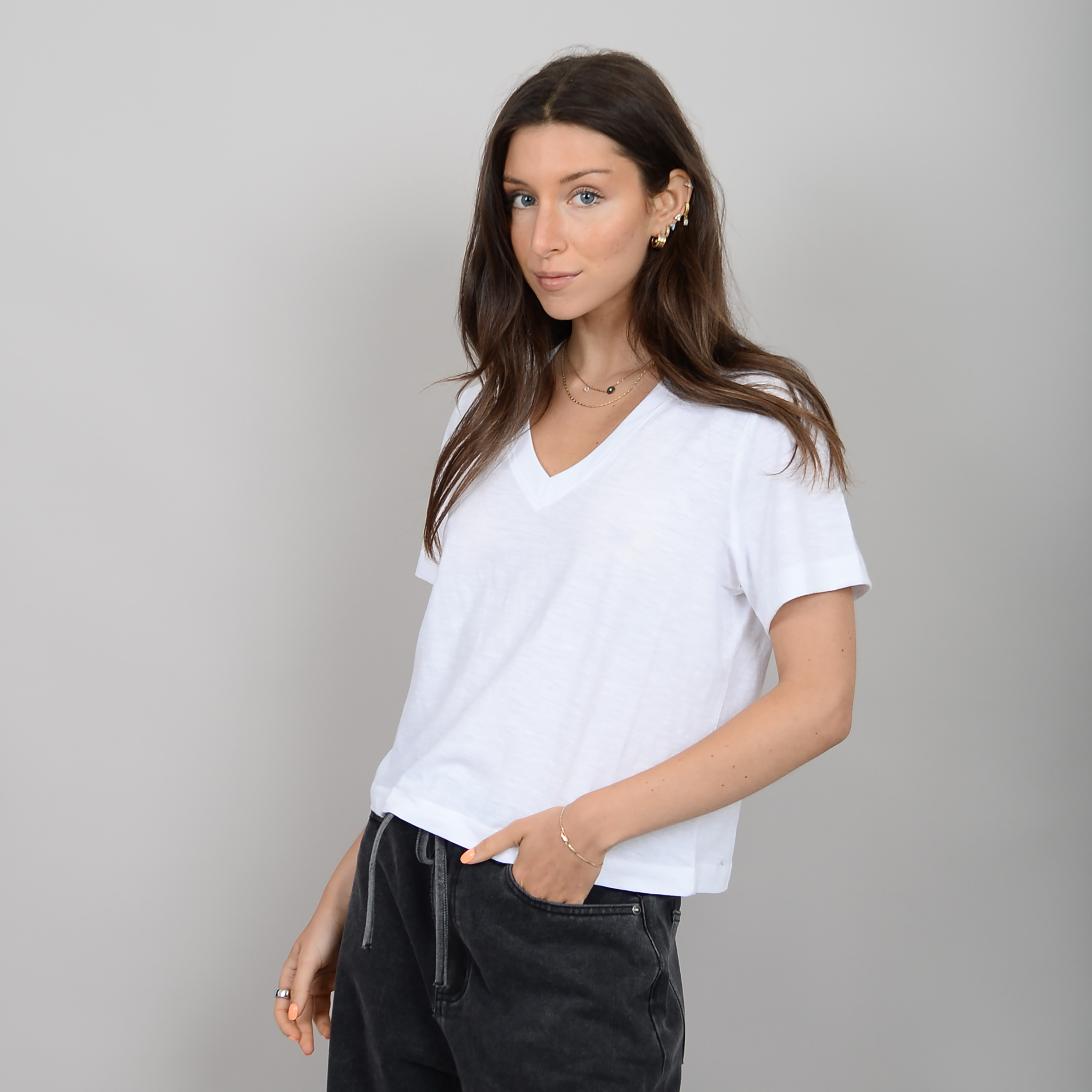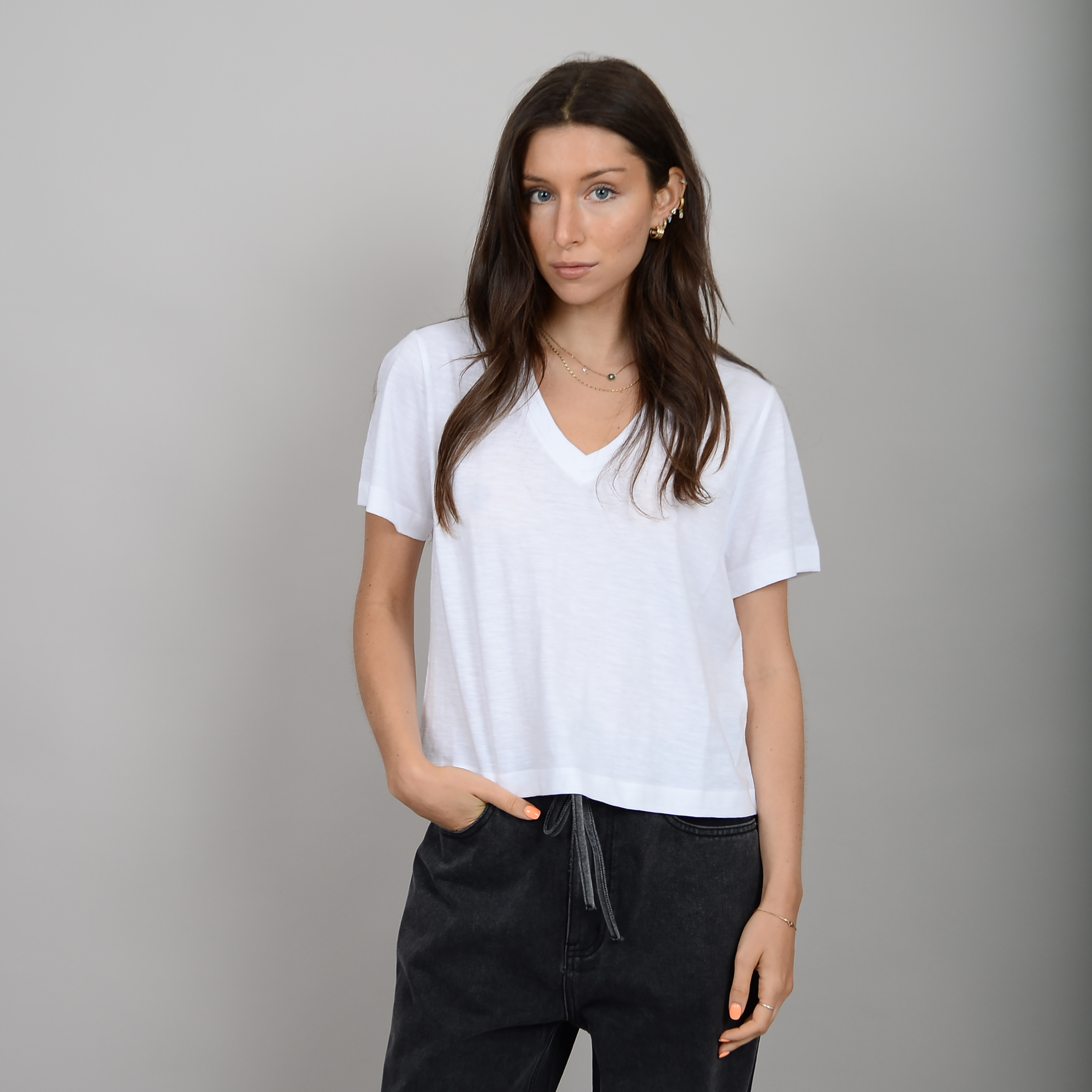 Vera V-Neck Tee | White