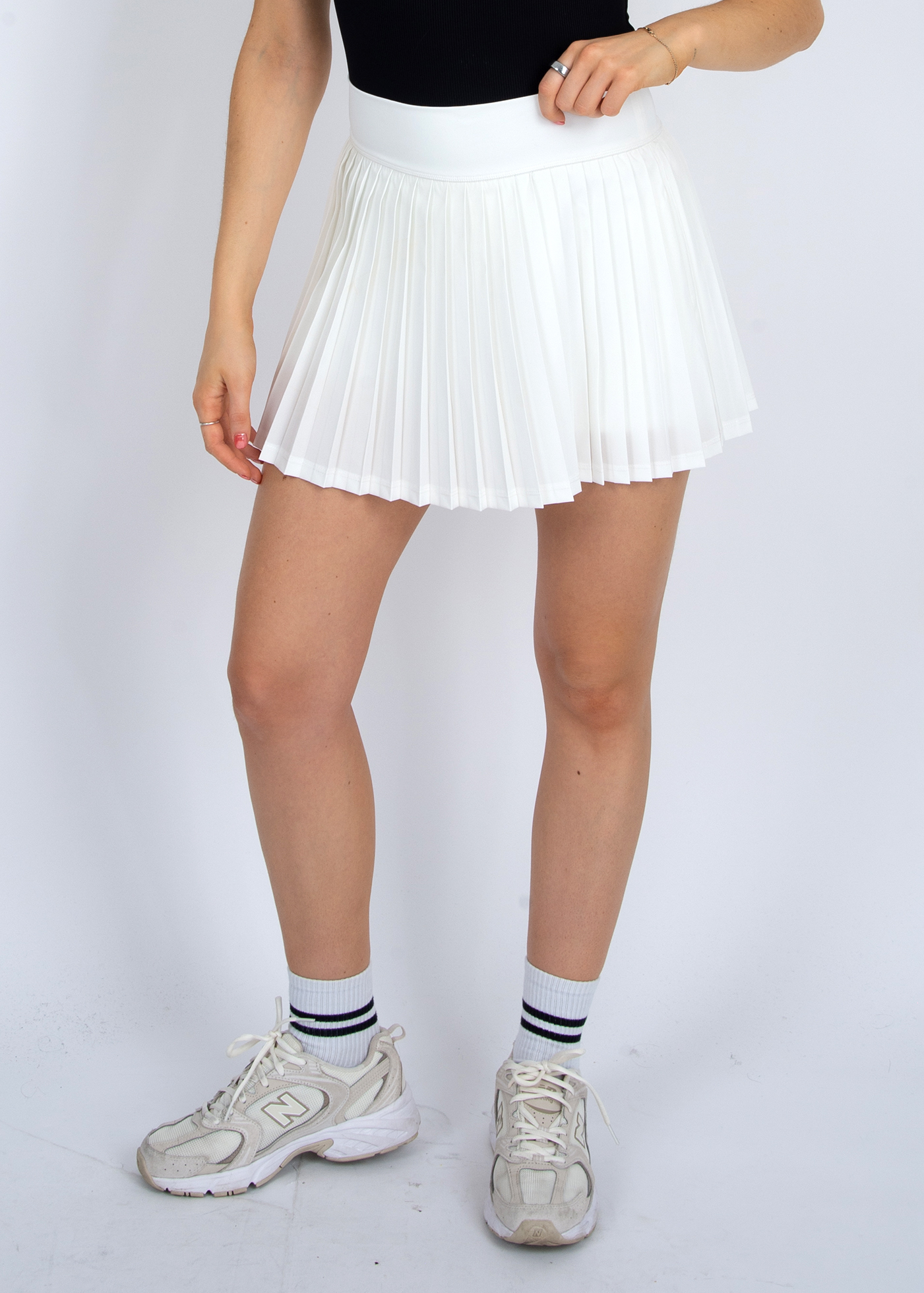Details: The Yura Pull-On Pleated Skirt is the perfect piece for Spring. Designed with a flattering pull-on elastic waistband making it easy to put on, along with built-in shorts for all-day comfort. Giving you that sporty, Spring look!