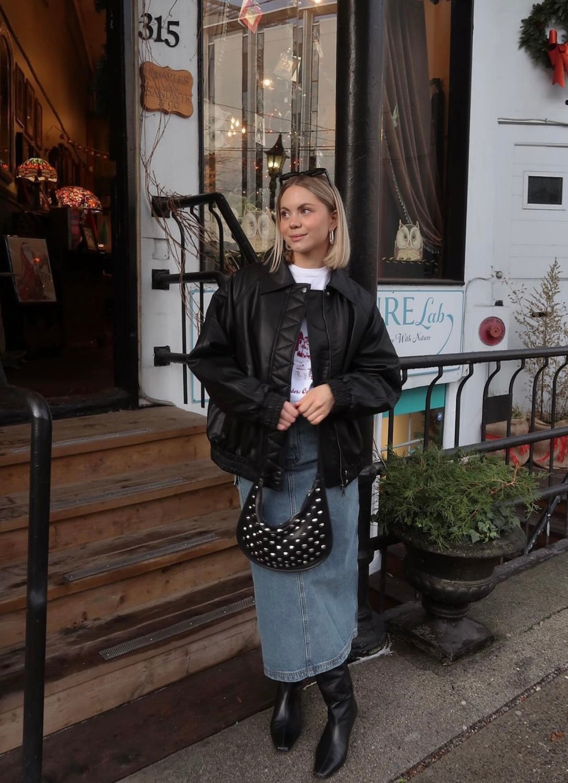 Our Oversized Leather Jacket has a truly oversized body and features a quilted lining with two side pockets. She's more oversized with a longer body than our Amelia or Mackenzie Bomber.